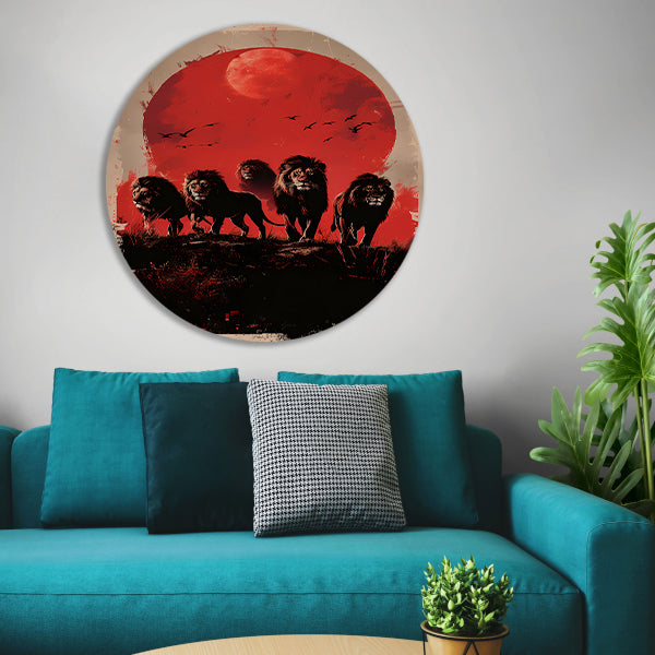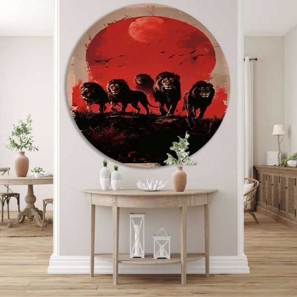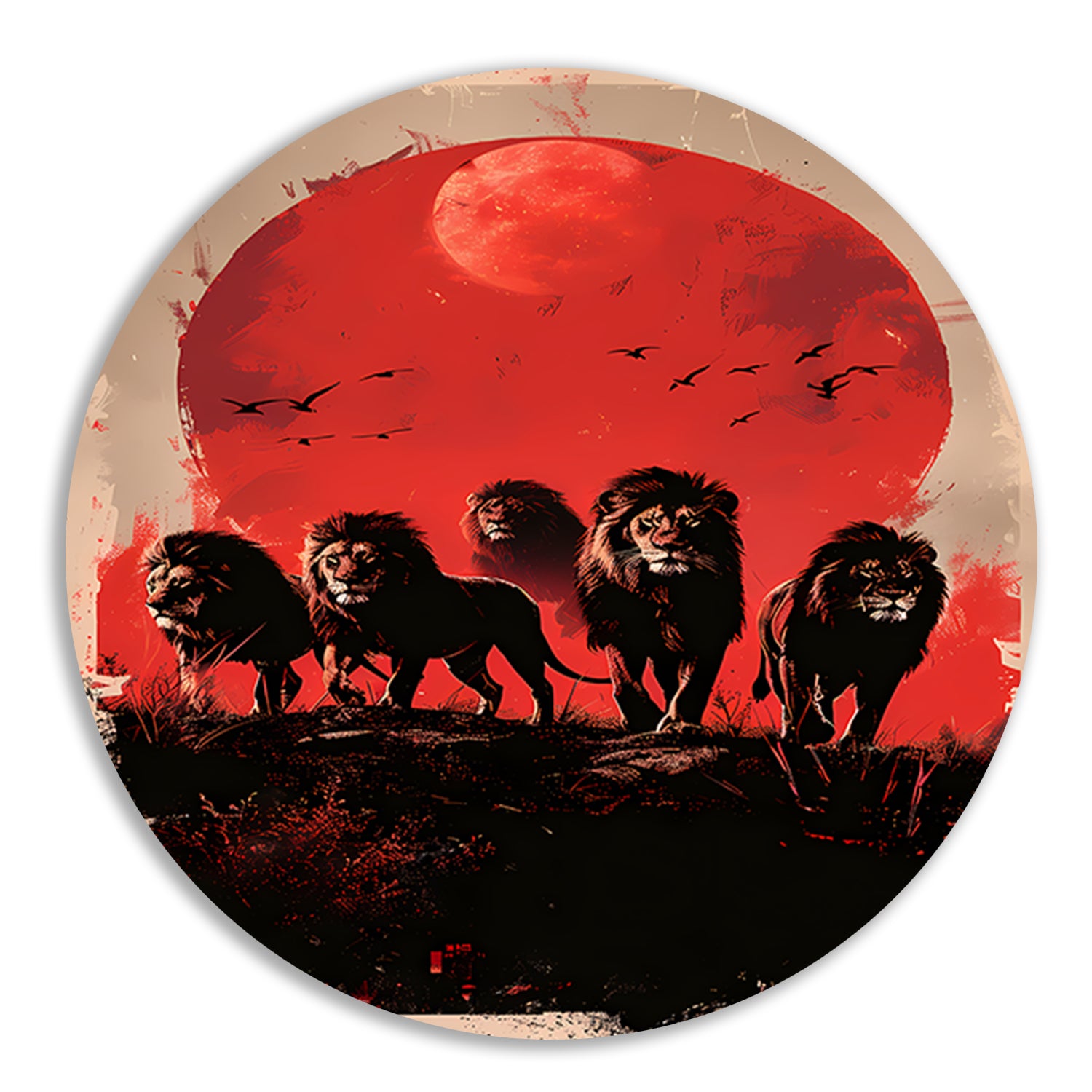 Sterrennacht met Leeuwen aluminium muurcirkel