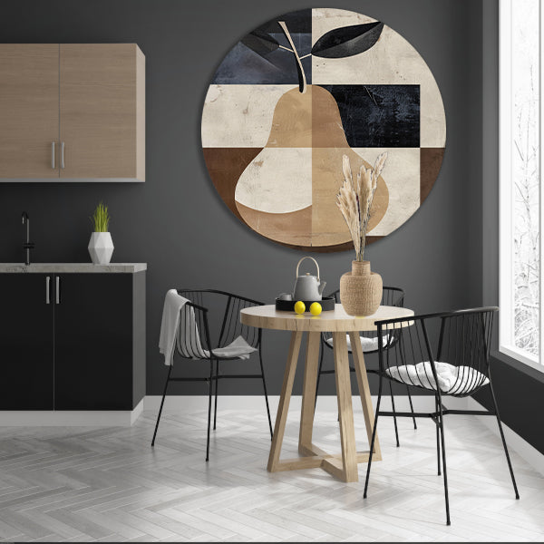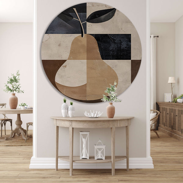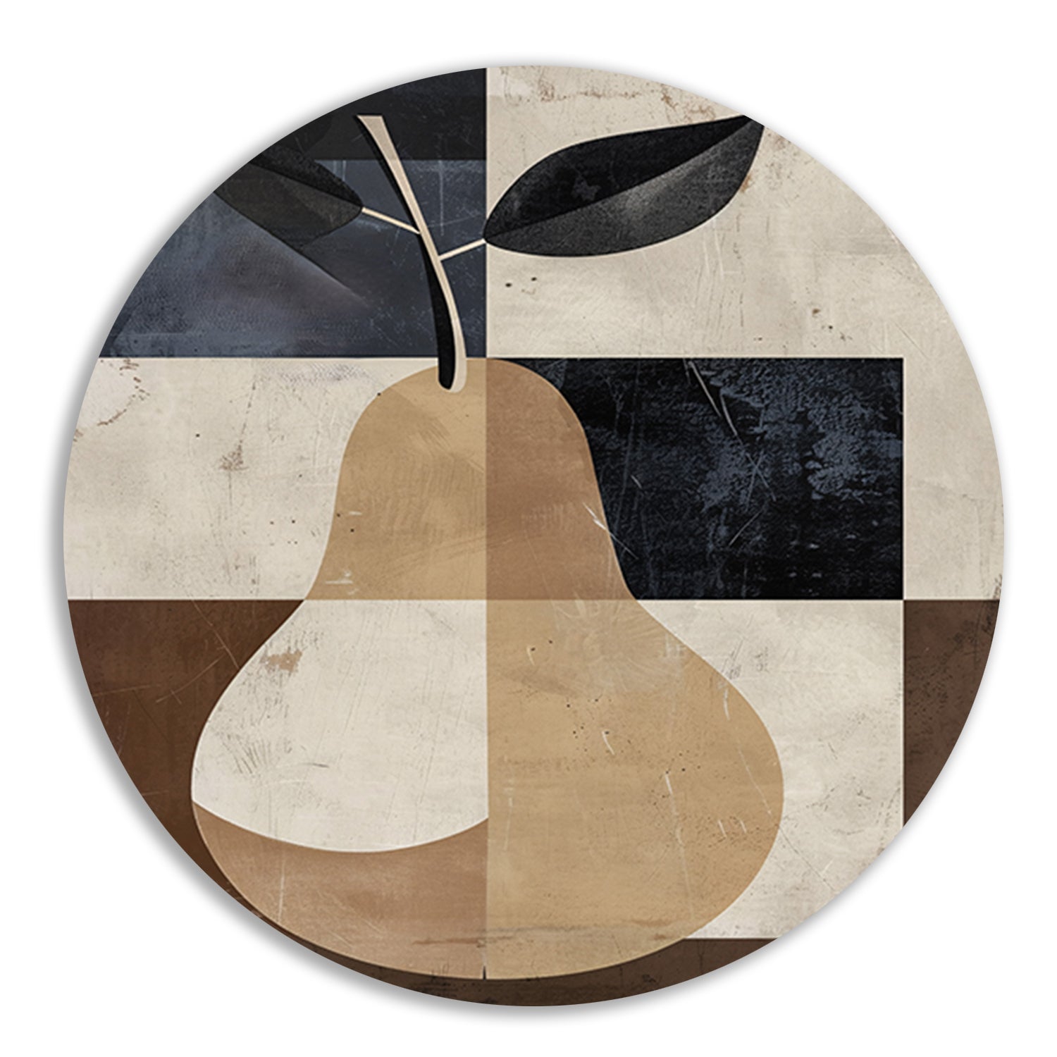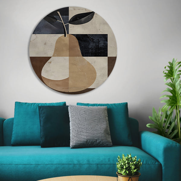 Stijlvolle Peer in Sepia en Aardetinten aluminium muurcirkel