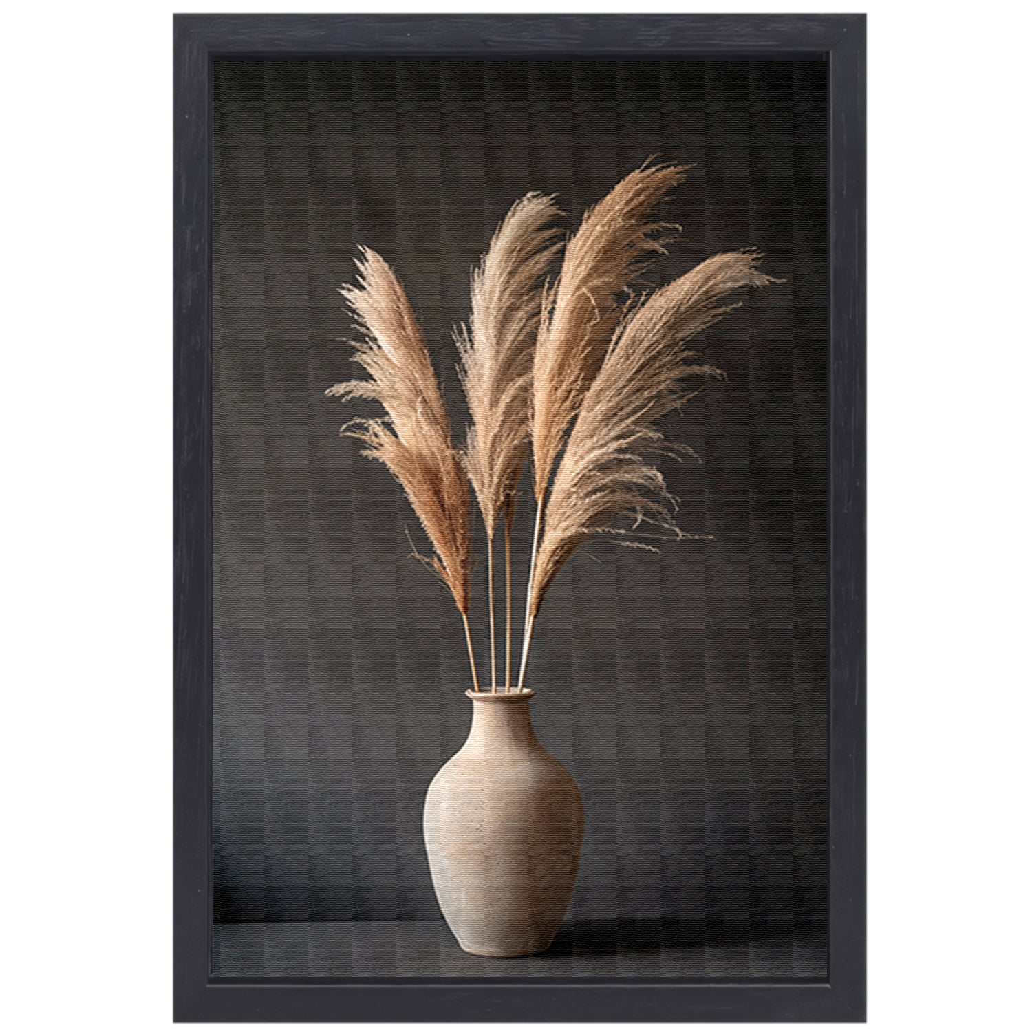 Stijlvolle vaas met beige pampasgras op donkere achtergrond canvas met baklijst