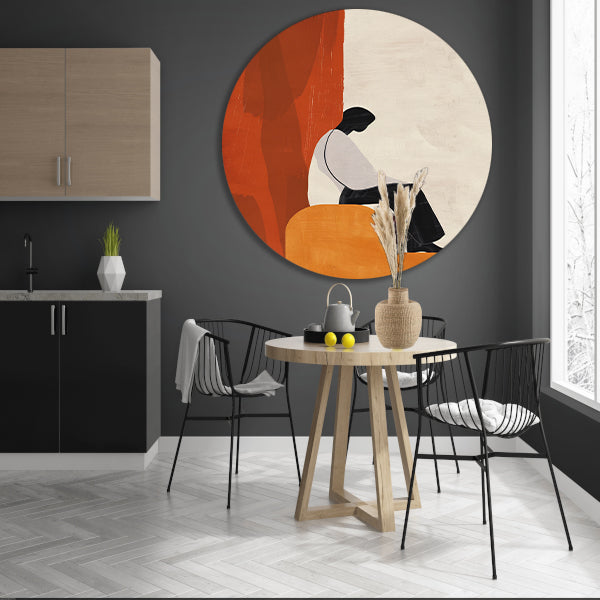 Stilistisch Minimalistisch Portret in Oranje en Zwart aluminium muurcirkel