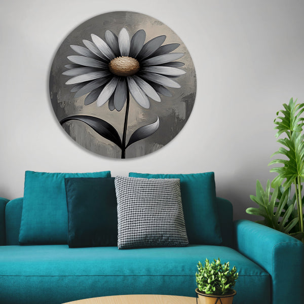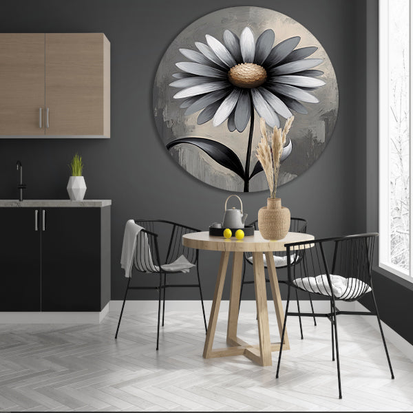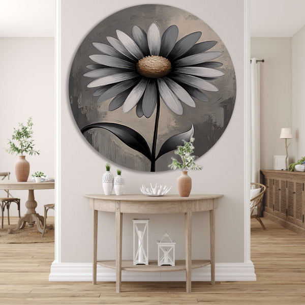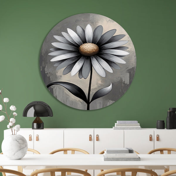 Stilistische Bloem in Monochroom Grijs aluminium muurcirkel