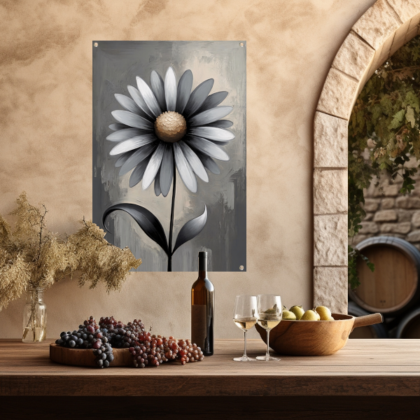 Stilistische Bloem in Monochroom Grijs tuinposter