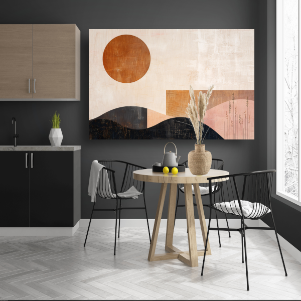 Een canvas met baklijst geeft je interieur een luxe en afgewerkte uitstraling. Onze baklijsten zijn gemaakt van hoogwaardig hout en verkrijgbaar in zwart met een zichtbare houtnerfstructuur, wat een moderne en elegante look biedt. De lijst heeft een framedikte van 3,5 cm. De montage van het canvas in de baklijst en aan de muur is eenvoudig.