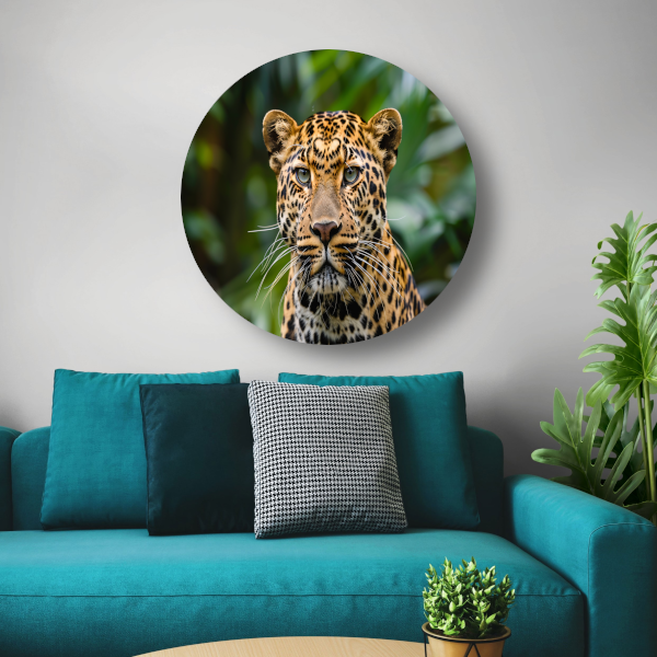 Breng de kracht en gratie van de wilde natuur naar binnen met de Stille Waarnemer - Luipaard in de Wildernis aluminium muurcirkel. Een prachtige toevoeging aan elke ruimte en een uniek kunstwerk om te koesteren.