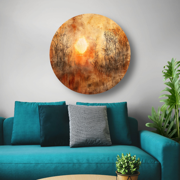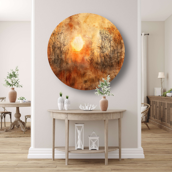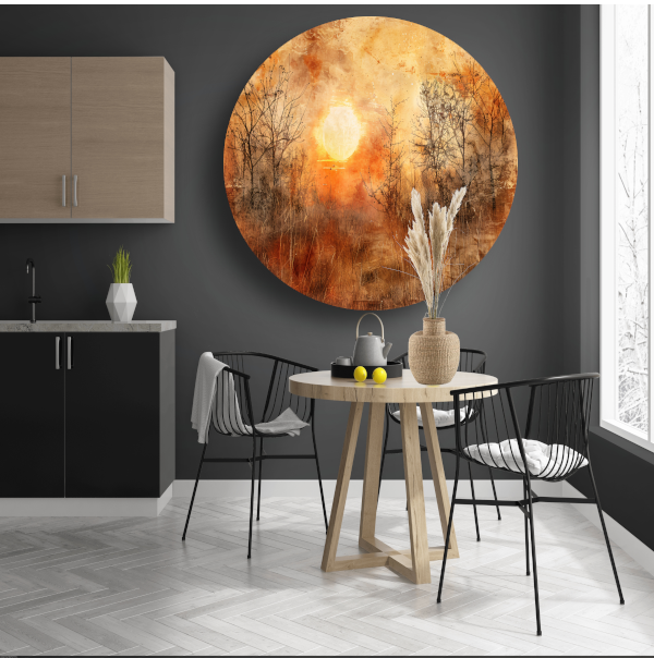Deze muurcirkel is verkrijgbaar in diverse maten, waardoor je de perfecte afmeting kunt kiezen voor jouw ruimte. Of je nu op zoek bent naar een eye-catcher in de woonkamer of een rustgevend accent in de slaapkamer, deze stille zonsondergang zal ongetwijfeld een aanwinst zijn voor je interieur. Voeg dit prachtige kunstwerk toe aan je collectie en geniet elke dag van de rustgevende schoonheid van een zonsondergang.