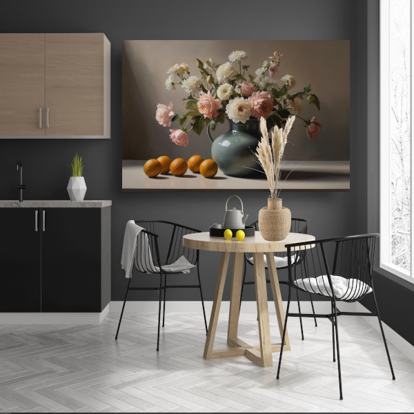 Een canvas met baklijst geeft je interieur een luxe en afgewerkte uitstraling. Onze baklijsten zijn gemaakt van hoogwaardig hout en verkrijgbaar in zwart met een zichtbare houtnerfstructuur, wat een moderne en elegante look biedt. De lijst heeft een framedikte van 3,5 cm. De montage van het canvas in de baklijst en aan de muur is eenvoudig.