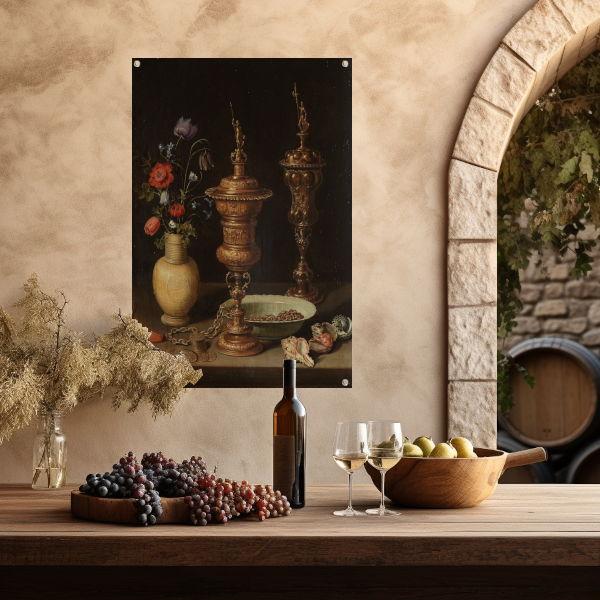 Stilleven met bloemen en vergulde bekers - Clara Peeters tuinposter