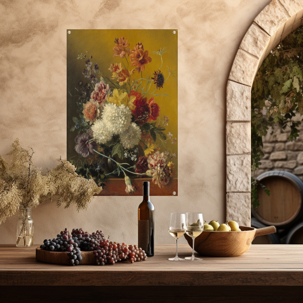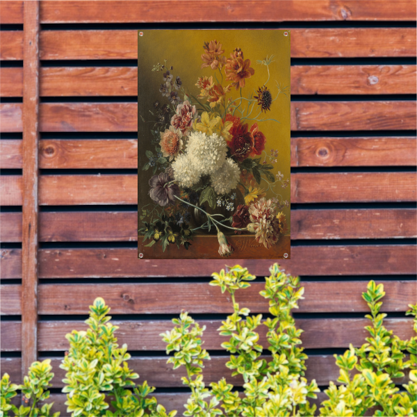 Onze tuinposters zijn UV- en waterbestendig, waardoor ze bestand zijn tegen zon en regen en hun kleuren langdurig mooi blijven. Alle tuinposters van De Muurdecoratie zijn voorzien van ringen in de hoeken, zodat je ze eenvoudig kunt ophangen. Let op: onze tuinposters worden niet met ophangsysteem geleverd.