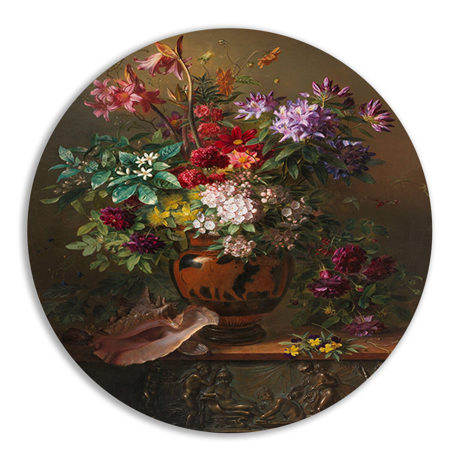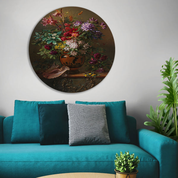 Stilleven met bloemen in een Griekse vaas - Georgius van Os aluminium muurcirkel