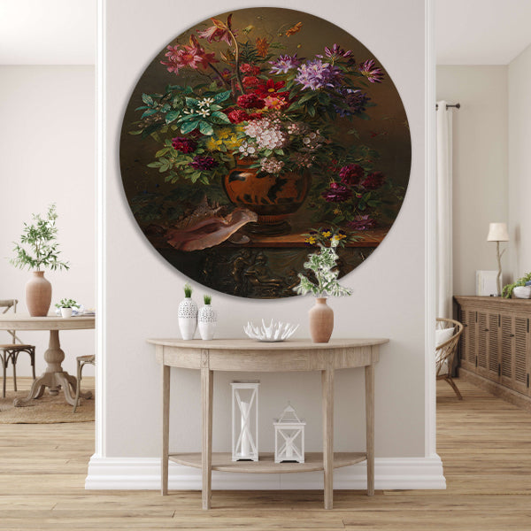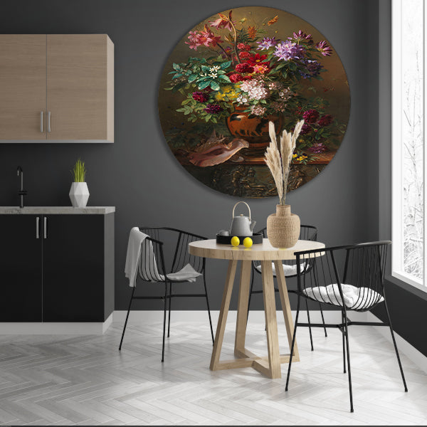 Breng de schoonheid en elegantie van dit klassieke meesterwerk in huis met deze prachtige muurcirkel van Georgius van Os. Het is een tijdloos stuk dat zeker bewondering zal oogsten van gasten en zelfs van voorbijgangers. Verrijk je interieur met deze unieke kunstuiting en geniet dagelijks van de delicate bloemen en levendige kleuren van dit meesterwerk.