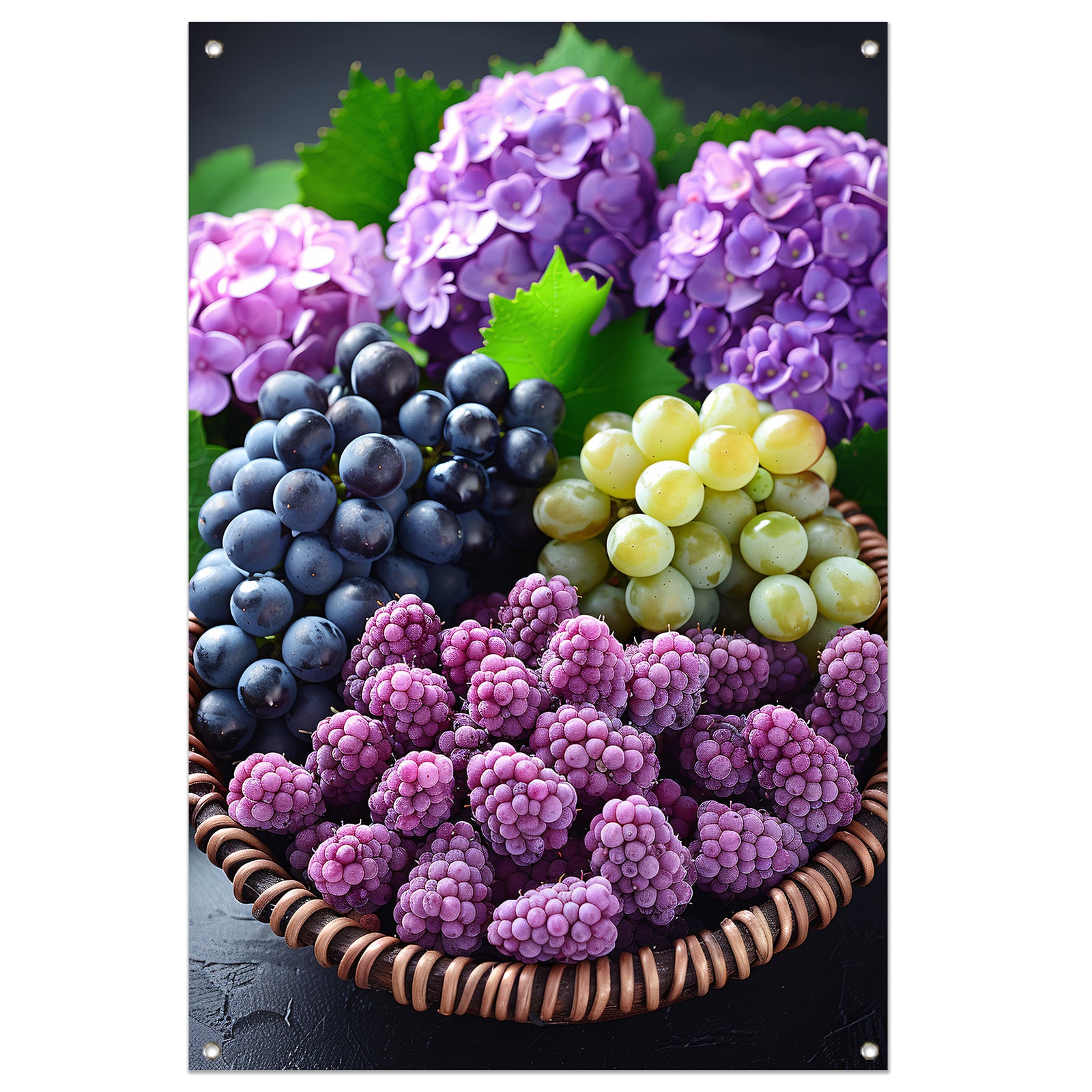 Stilleven met Druiven, Bramen en Hortensias tuinposter