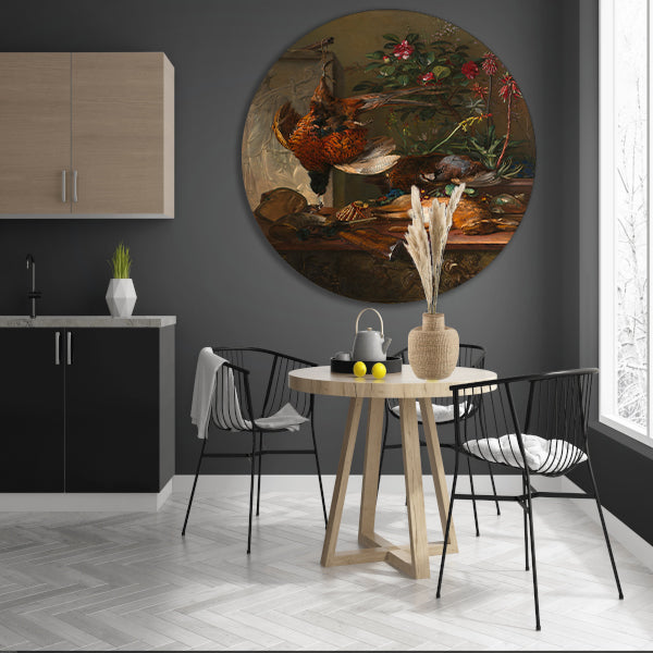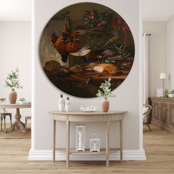 Stilleven met jachtbuit en Griekse stèle - Georgius Jacobus Johannes van Os aluminium muurcirkel