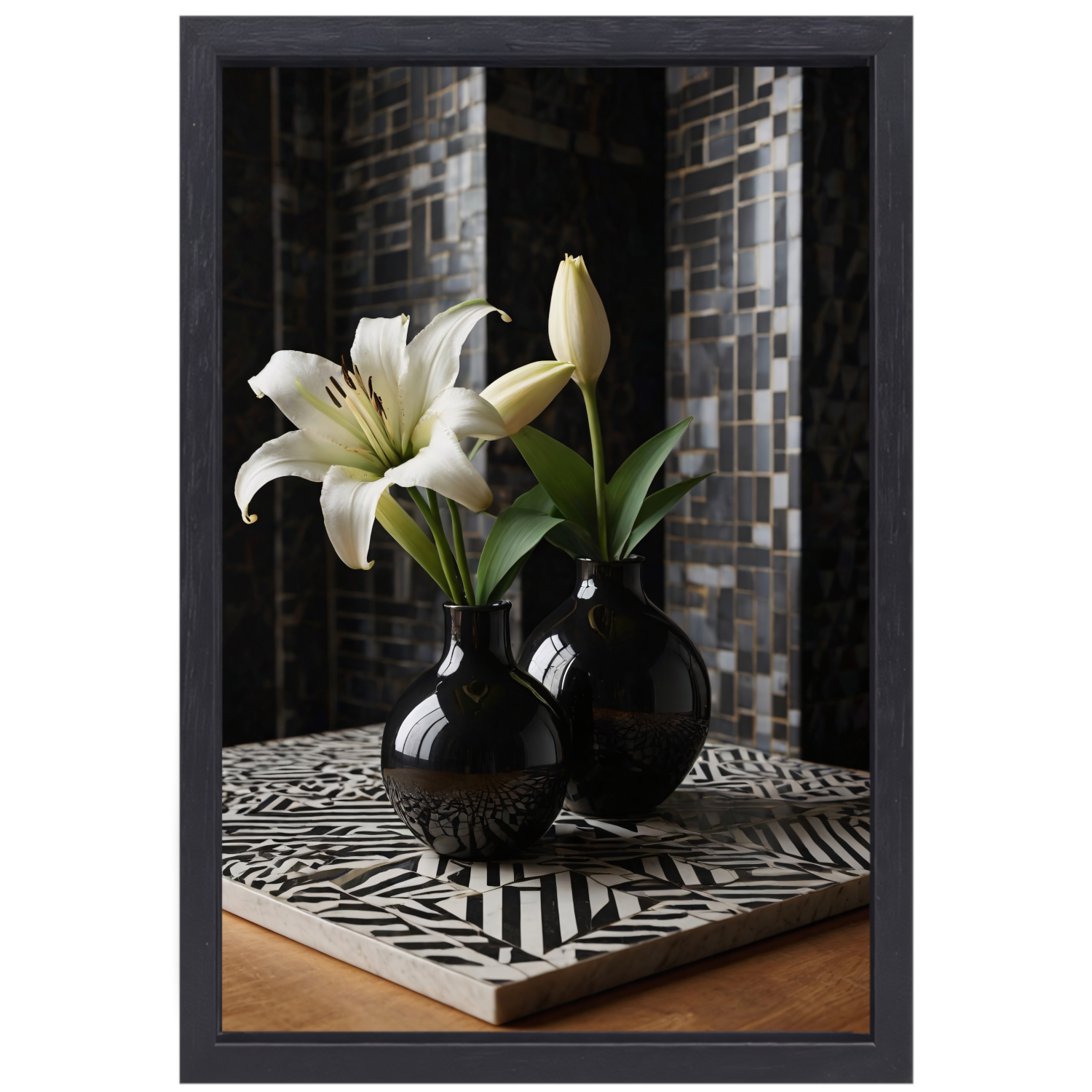 Stilleven met Lelies in Zwart-Witte Vazen canvas met baklijst
