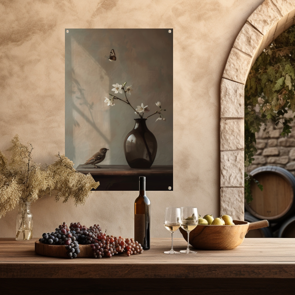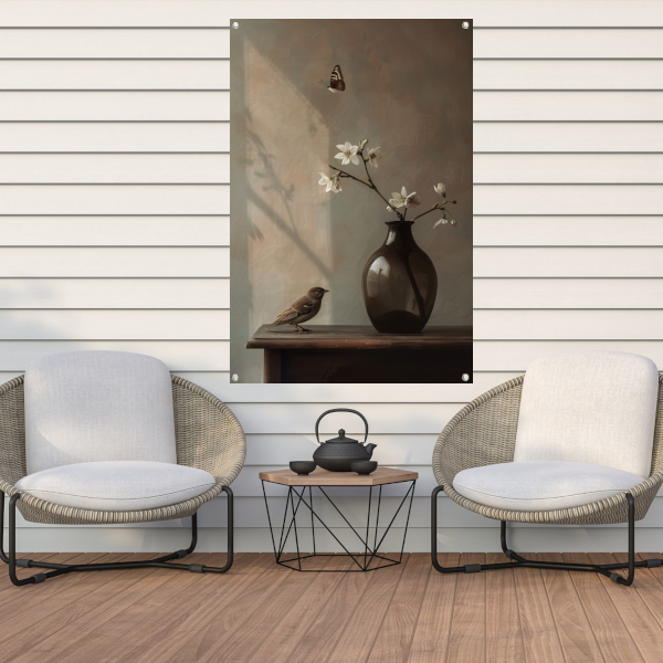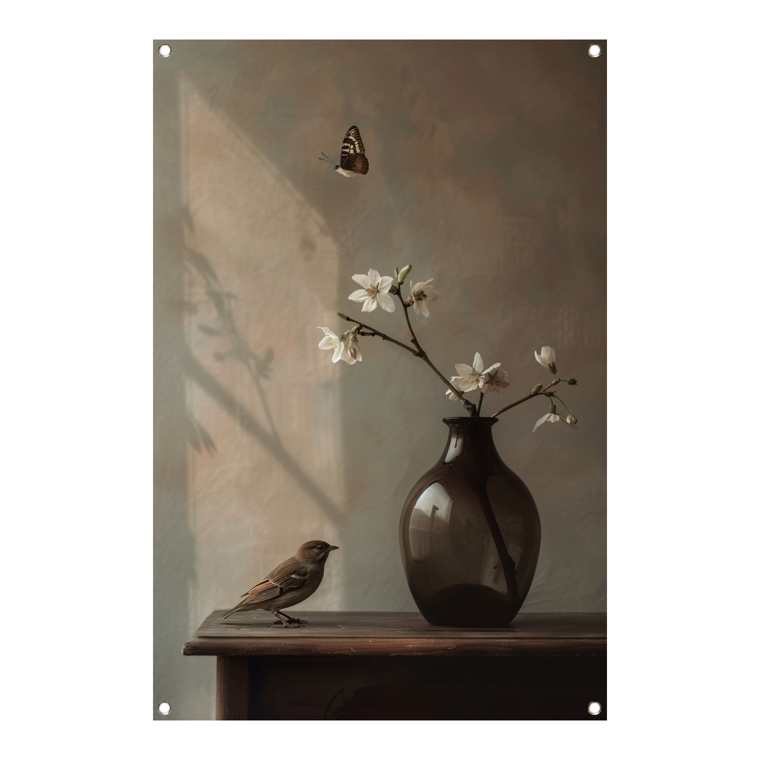 Stilleven met Vogel en Witte Bloesem tuinposter