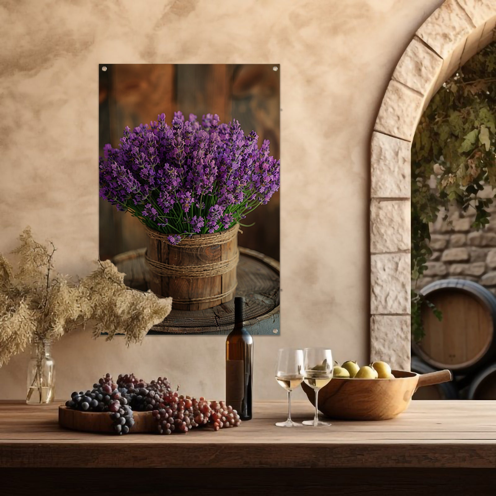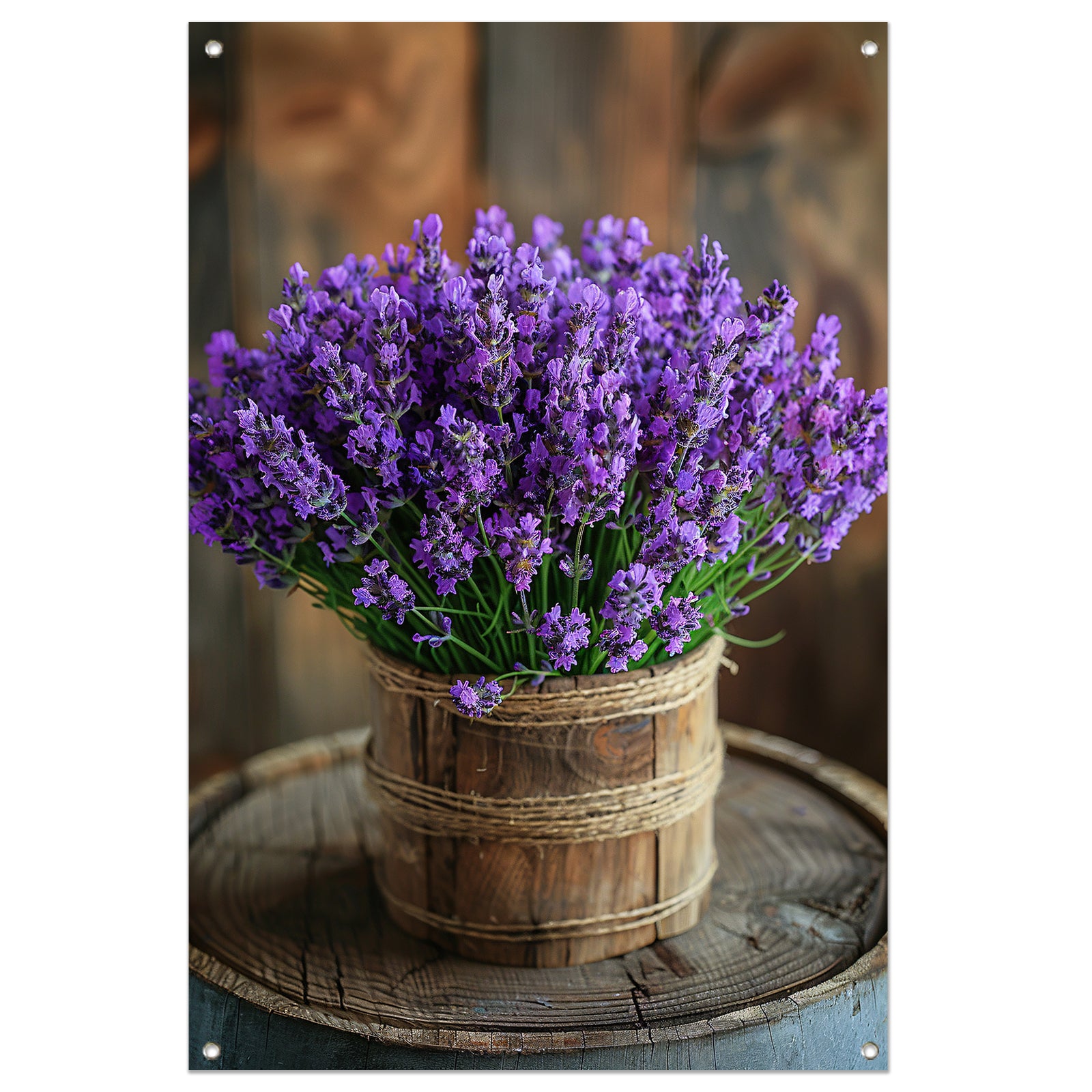 Stilleven van Lavendelboeket in Houten Vaas tuinposter