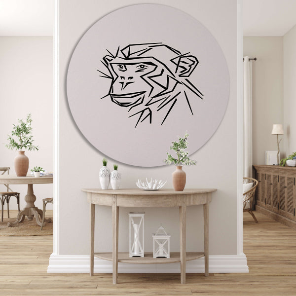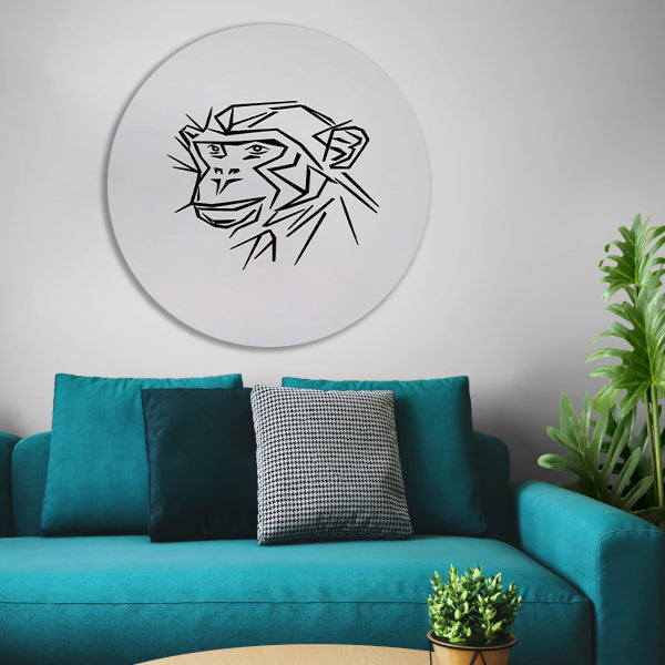 Strakke lijnen aap portret in zwart en wit aluminium muurcirkel