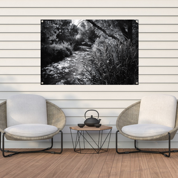 Onze tuinposters zijn UV- en waterbestendig, waardoor ze bestand zijn tegen zon en regen en hun kleuren langdurig mooi blijven. Alle tuinposters van De Muurdecoratie zijn voorzien van ringen in de hoeken, zodat je ze eenvoudig kunt ophangen. Let op: onze tuinposters worden niet met ophangsysteem geleverd.