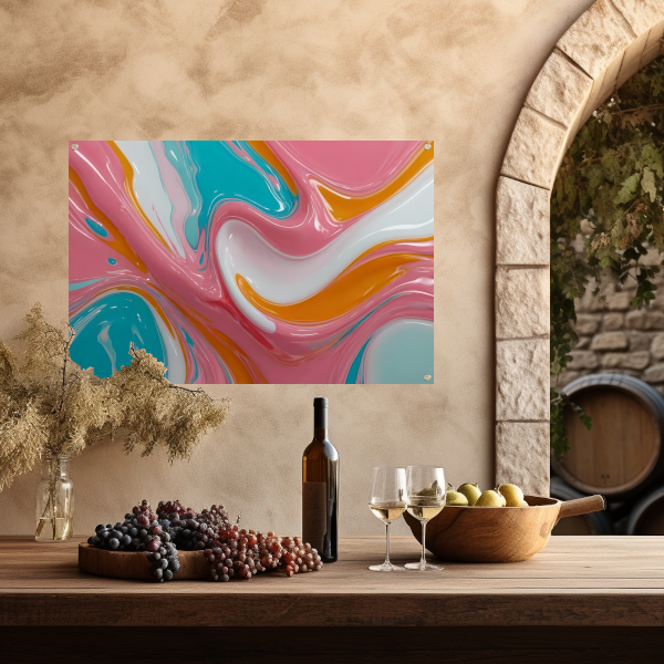 Haal nu de stromende kleurrijkheid van deze moderne abstractie tuinposter in huis en geef jouw tuin een unieke uitstraling!