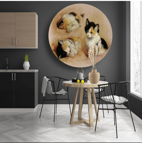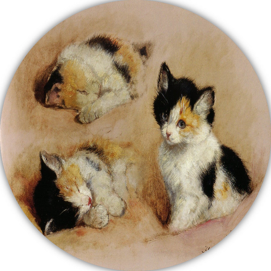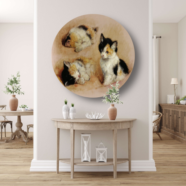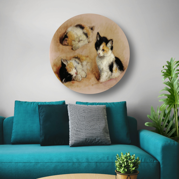 Studies van ontwakend katje - Henriëtte Ronner aluminium muurcirkel