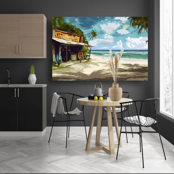 Een canvas met baklijst geeft je interieur een luxe en afgewerkte uitstraling. Onze baklijsten zijn gemaakt van hoogwaardig hout en verkrijgbaar in zwart met een zichtbare houtnerfstructuur, wat een moderne en elegante look biedt. De lijst heeft een framedikte van 3,5 cm. De montage van het canvas in de baklijst en aan de muur is eenvoudig.