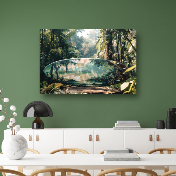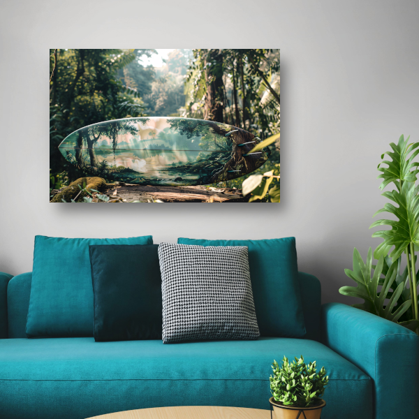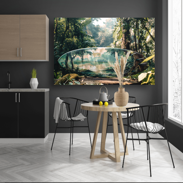 De combinatie van de stoere surfplank en het serene boslandschap zorgt voor een unieke en trendy uitstraling in huis. Haal de natuur in huis met deze prachtige surfplank met boslandschap acrylglas en geniet elke dag van de rustgevende sfeer die het kunstwerk uitstraalt.