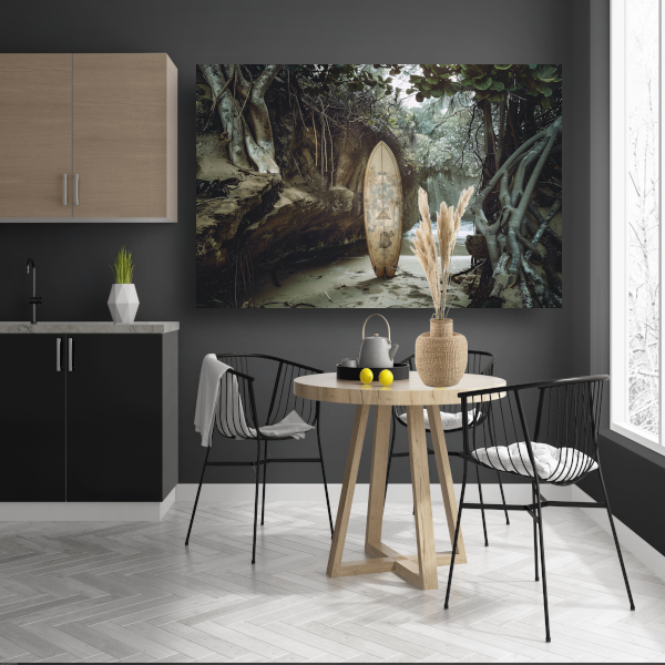Een canvas met baklijst geeft je interieur een luxe en afgewerkte uitstraling. Onze baklijsten zijn gemaakt van hoogwaardig hout en verkrijgbaar in zwart met een zichtbare houtnerfstructuur, wat een moderne en elegante look biedt. De lijst heeft een framedikte van 3,5 cm. De montage van het canvas in de baklijst en aan de muur is eenvoudig.