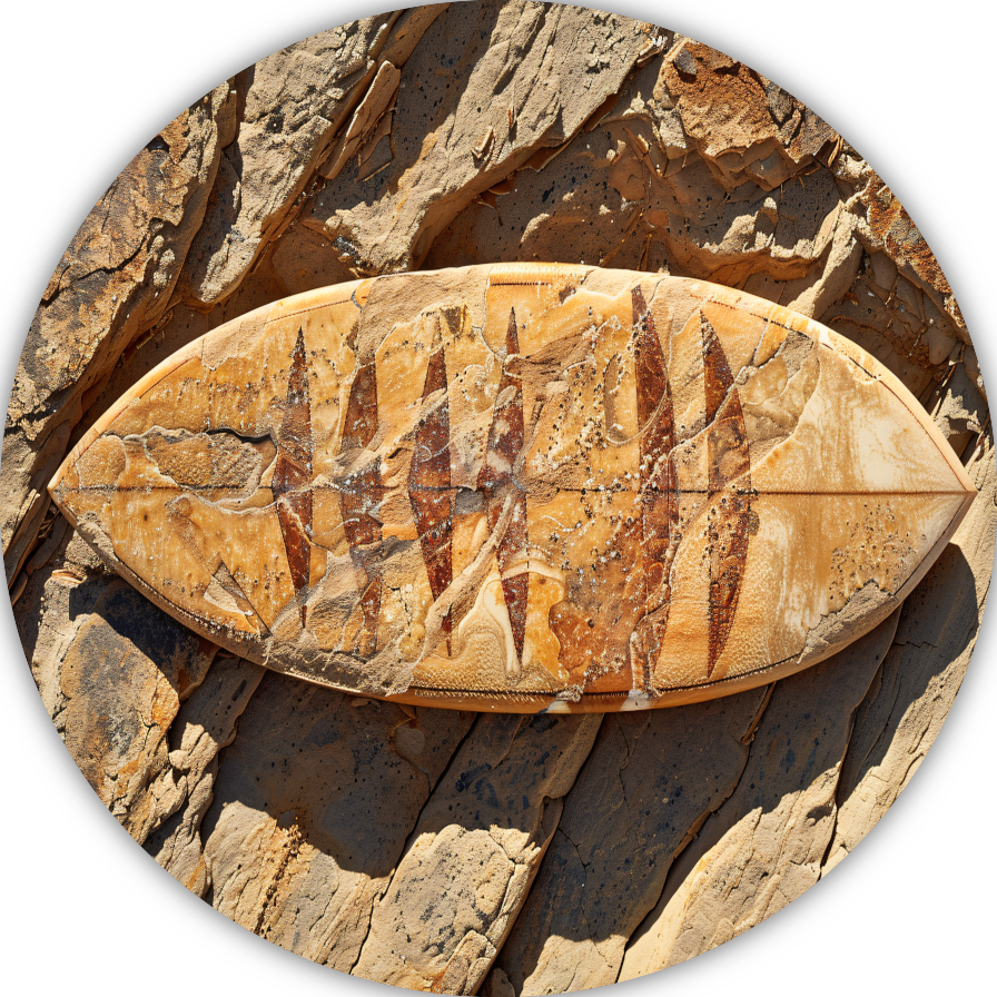 Surfplank op rotsen aluminium muurcirkel