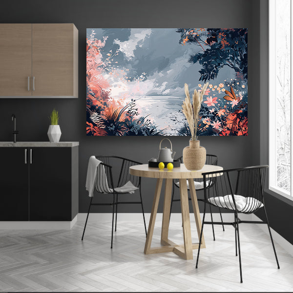Surrealistisch Bloemen en Strand Landschap Schilderij poster