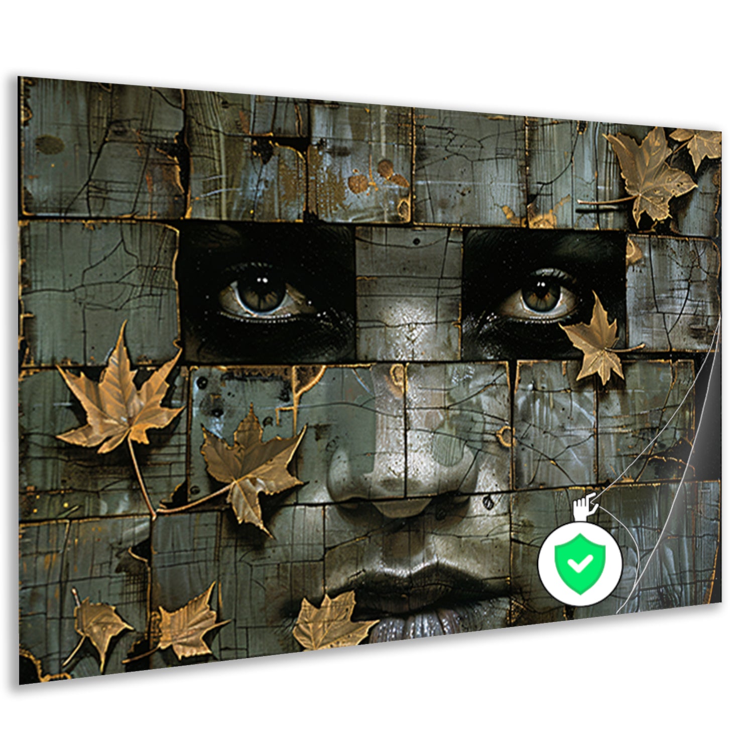 Surrealistisch gezicht met gouden bladeren kunstwerk poster