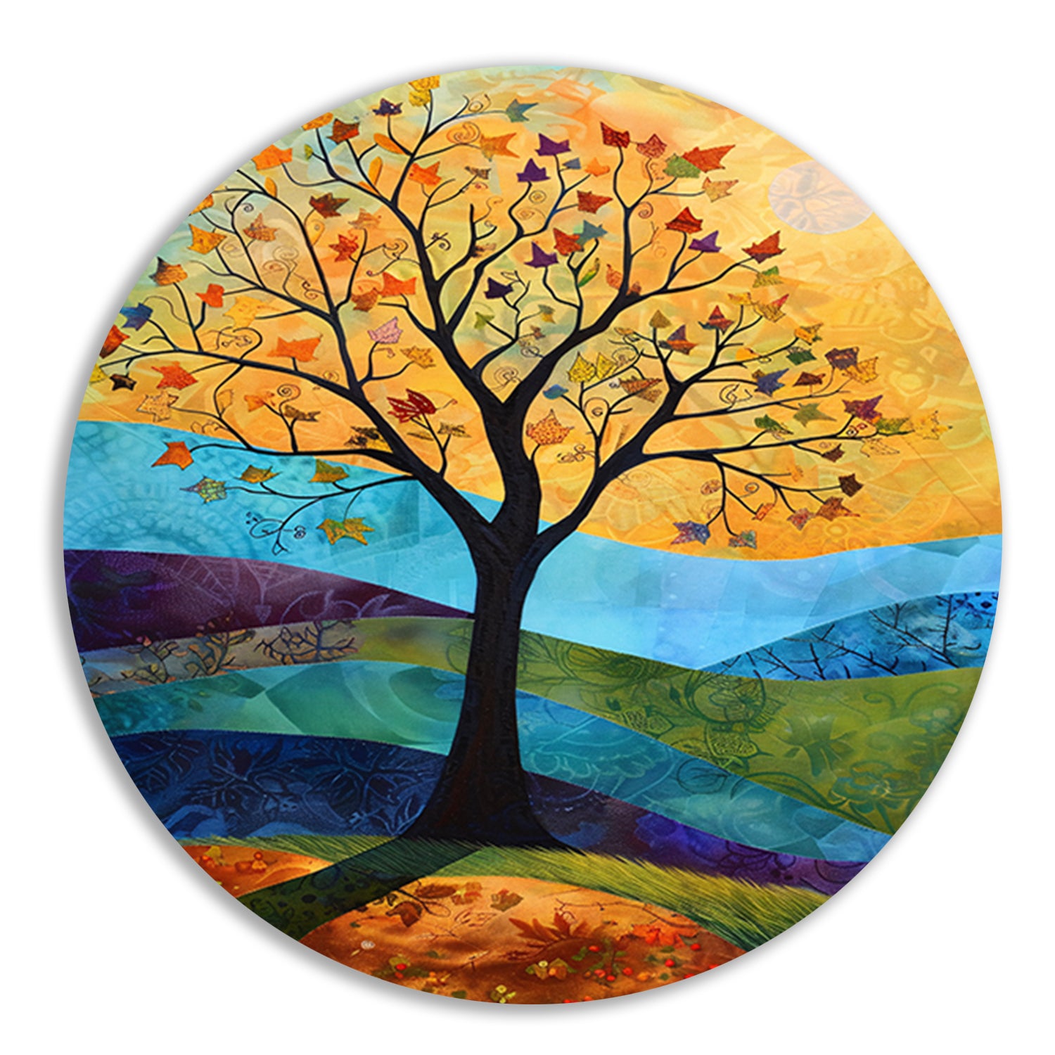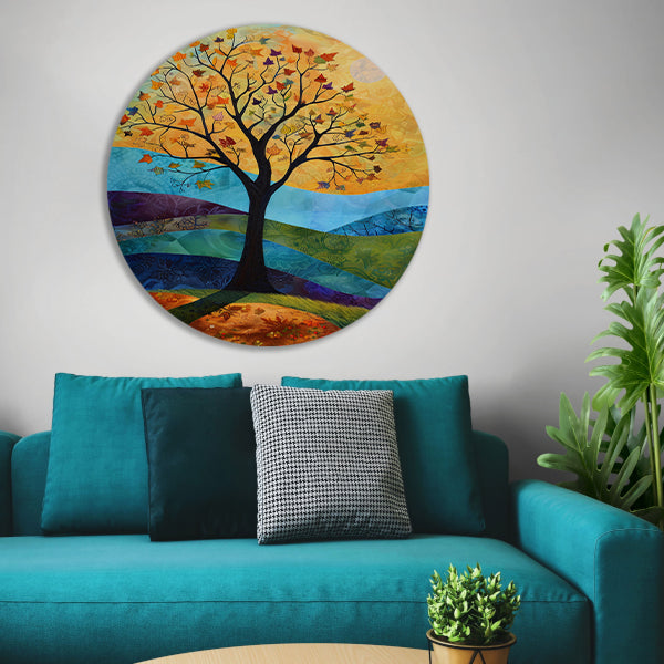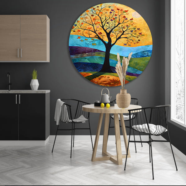 Surrealistisch herfstlandschap met kleurrijke boom aluminium muurcirkel