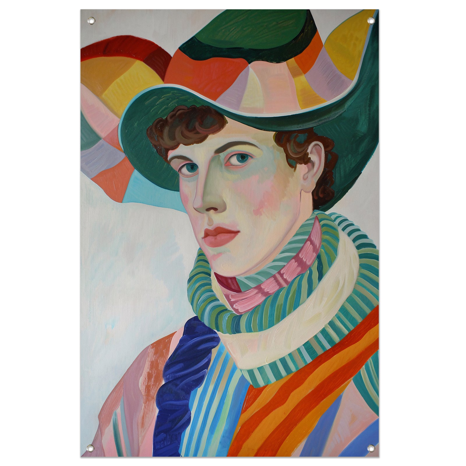 Surrealistisch portret met kleurrijke accessoires tuinposter