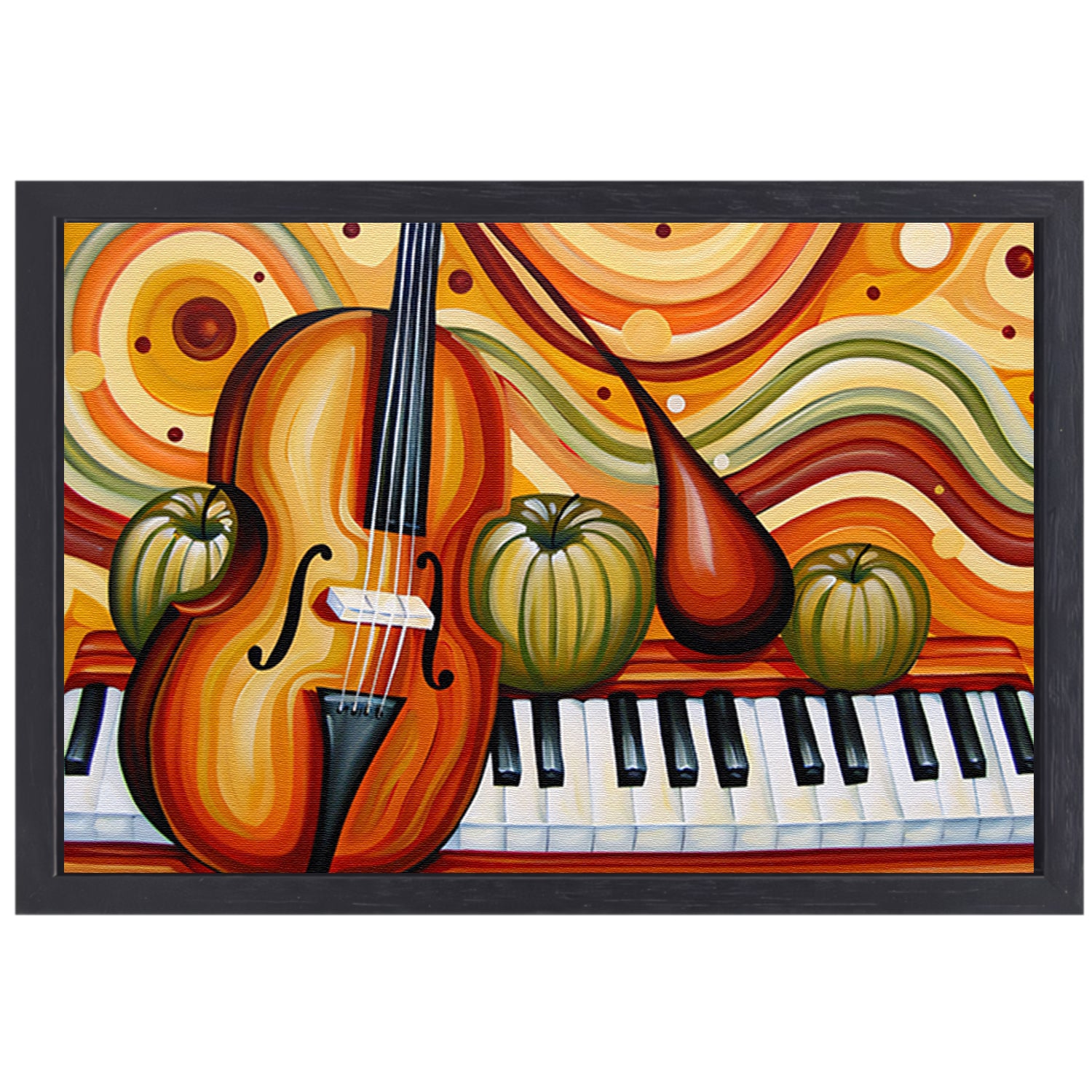 Surrealistisch schilderij van viool en fruit canvas met baklijst