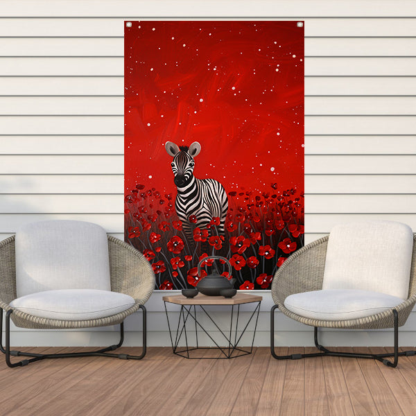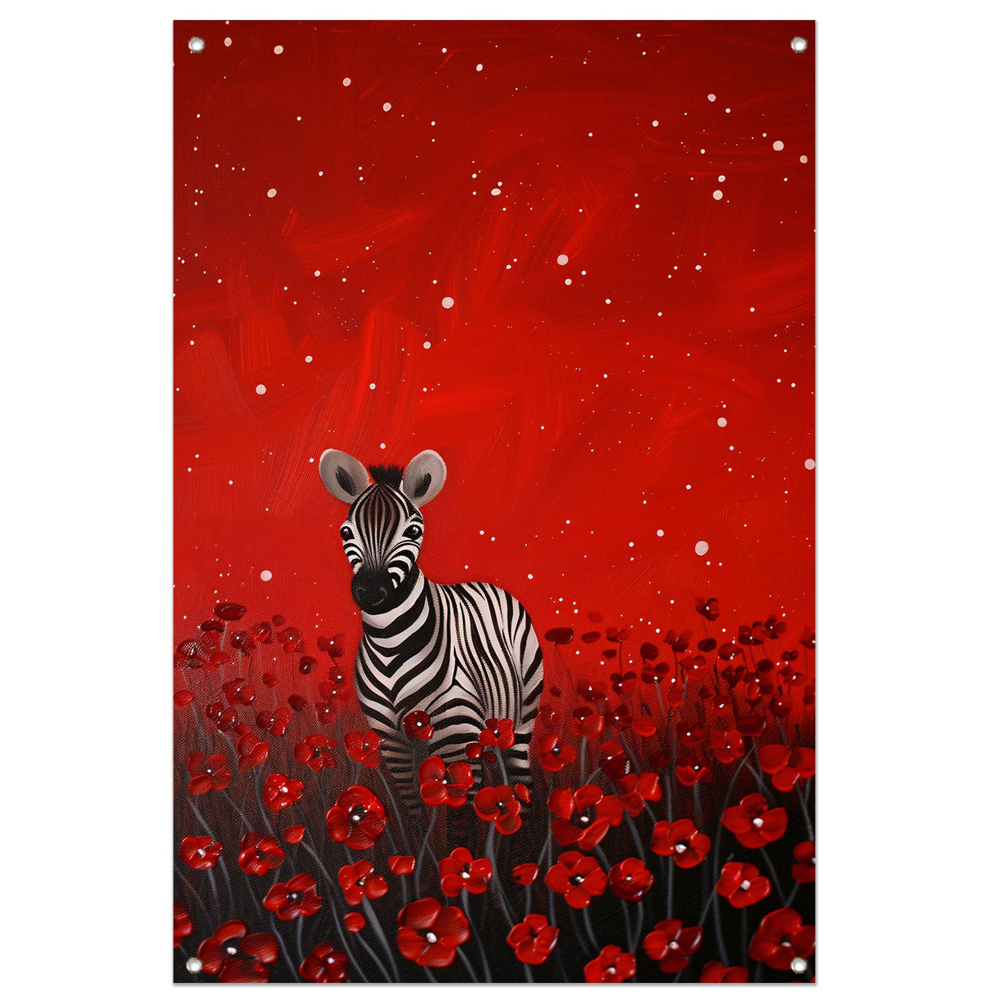 Surrealistisch schilderij van zebra in bloemenveld tuinposter
