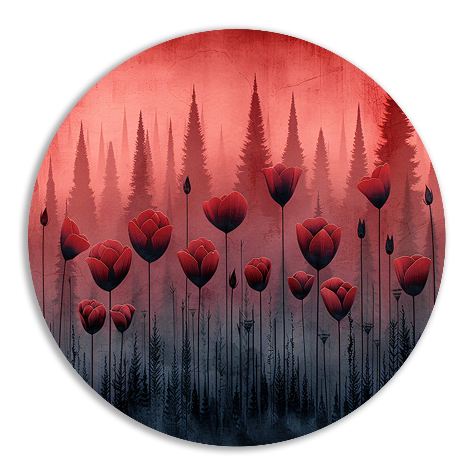 Surrealistische bloemen in minimalistisch bos aluminium muurcirkel