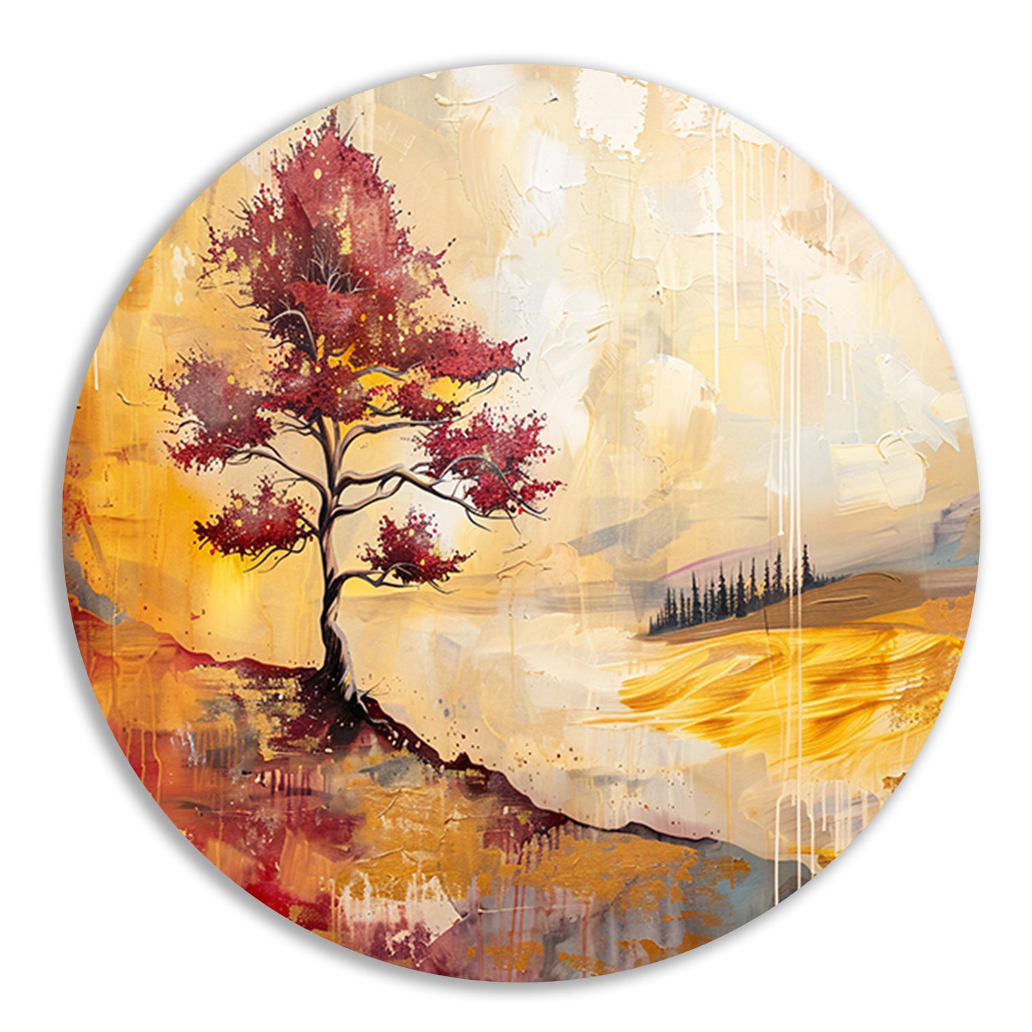 Surrealistische kleurrijke boom in zomers landschap aluminium muurcirkel