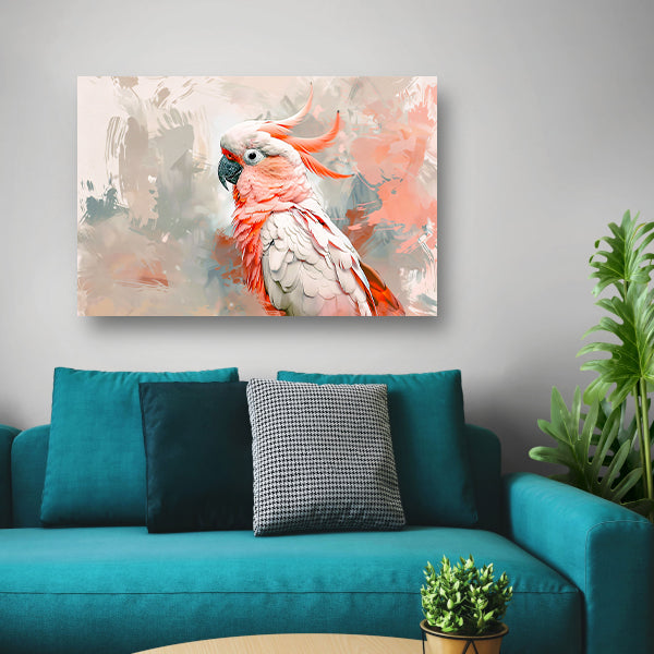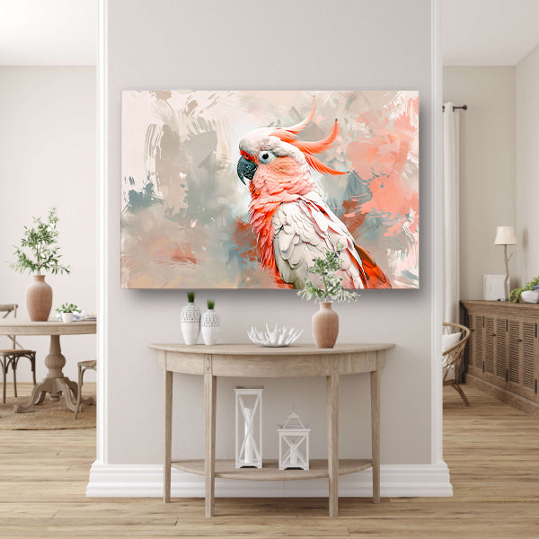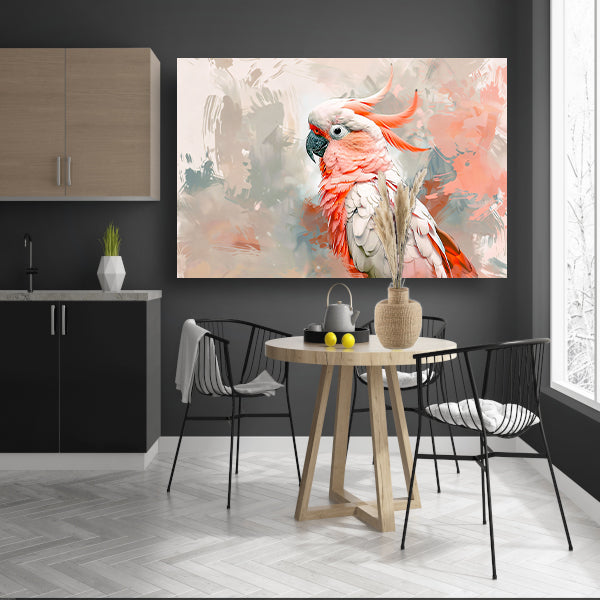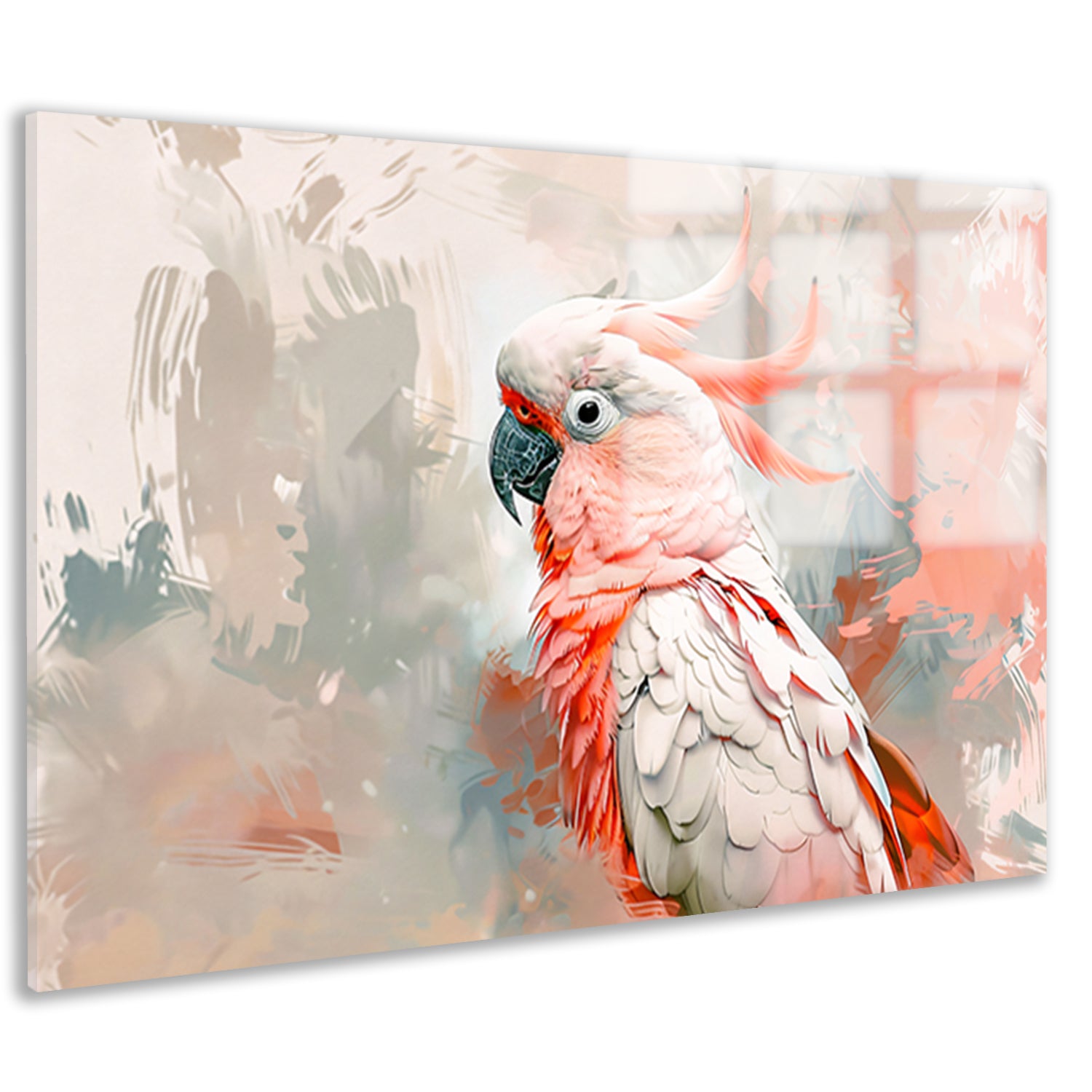 Surrealistische kleurrijke papegaai op abstracte achtergrond acrylglas