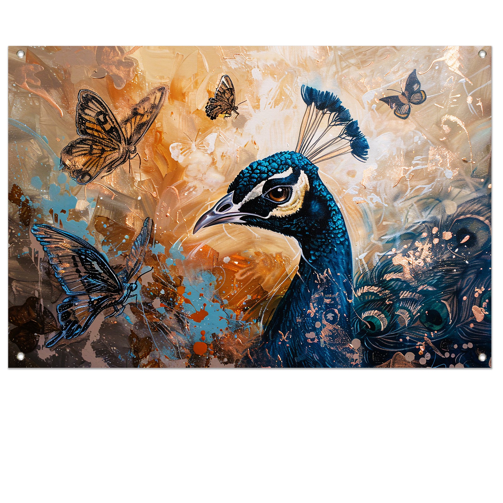 Surrealistische pauw met kleurrijke vlinders tuinposter