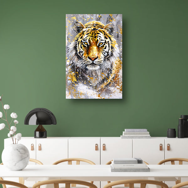 Surrealistische tijger met dynamische kleuren canvas met baklijst
