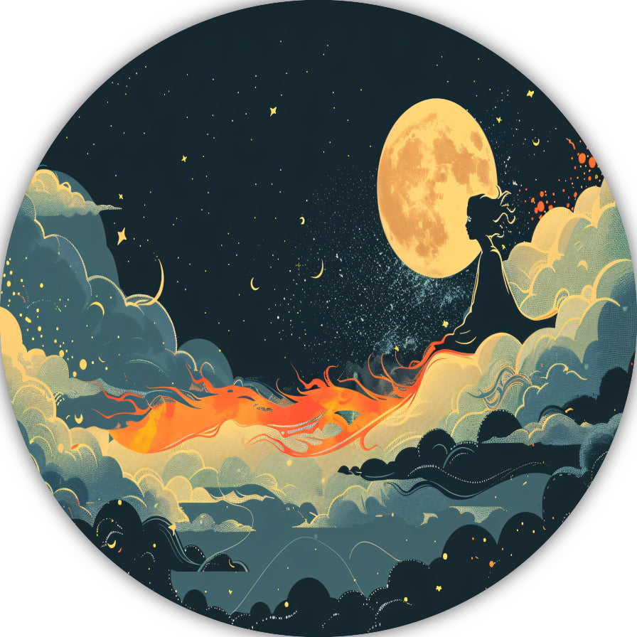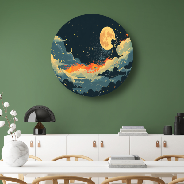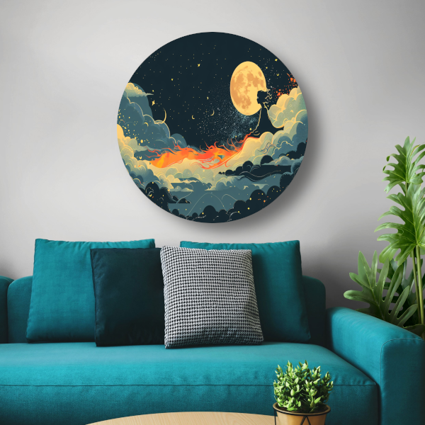 Surrealistische Vliegende Leeuw Maan aluminium muurcirkel