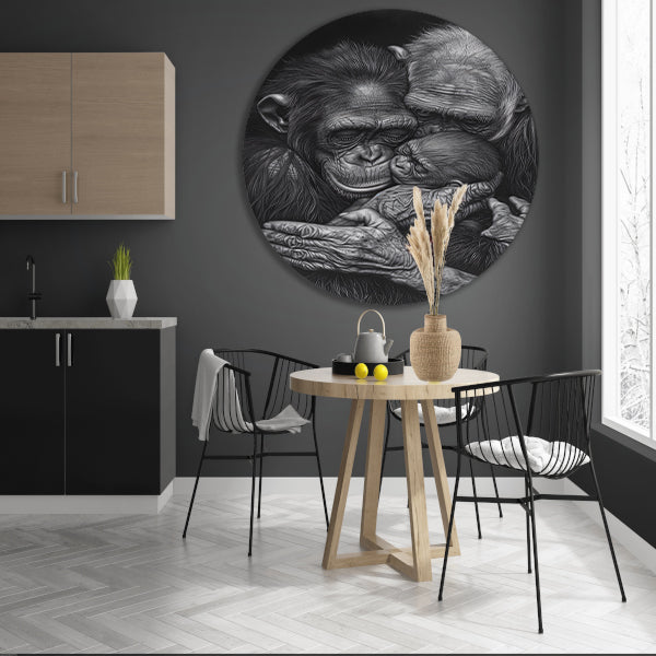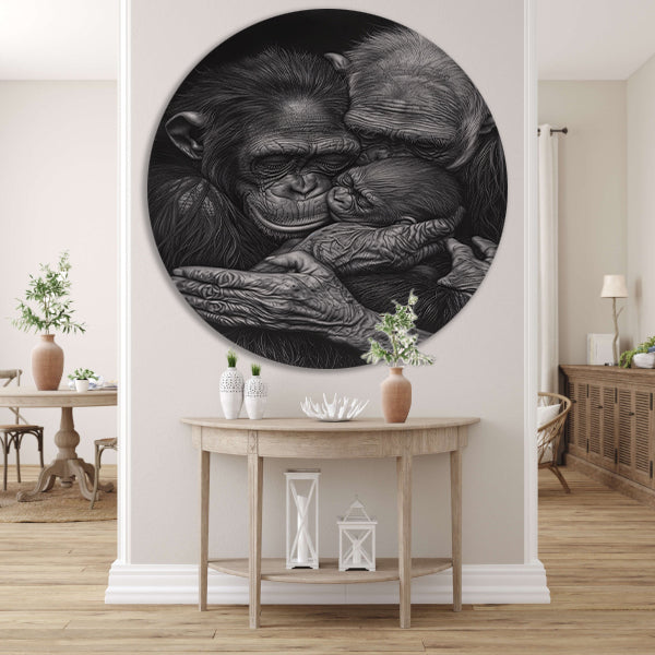 Breng wat beweging en vrolijkheid in uw huis met deze prachtige muurcirkel van "Tedere Familie Momenten Bij Apen". Bestel vandaag nog en geniet van de gezelligheid die deze afbeelding met zich meebrengt.