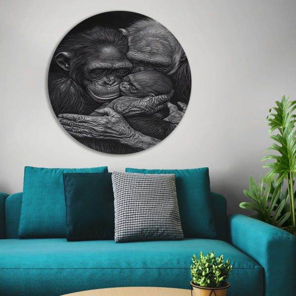 Tedere Familie Momenten Bij Apen aluminium muurcirkel