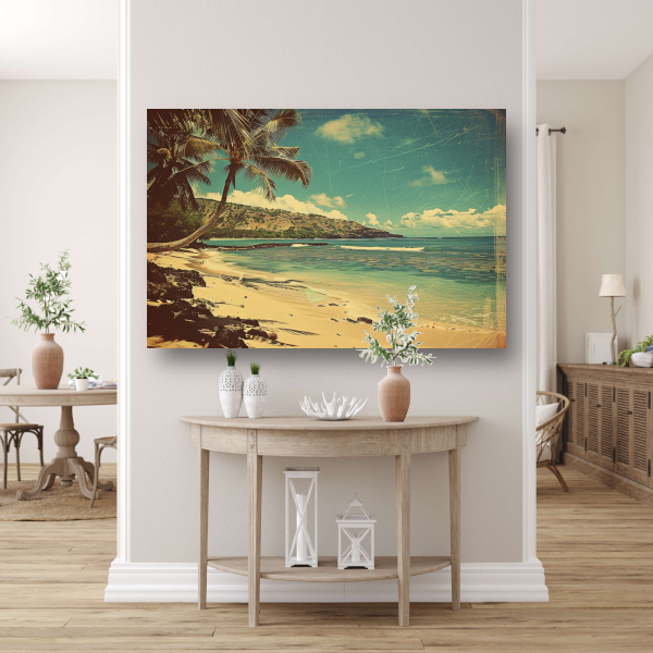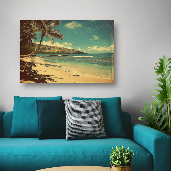 Tropisch Strand met Palmbomen canvas met baklijst