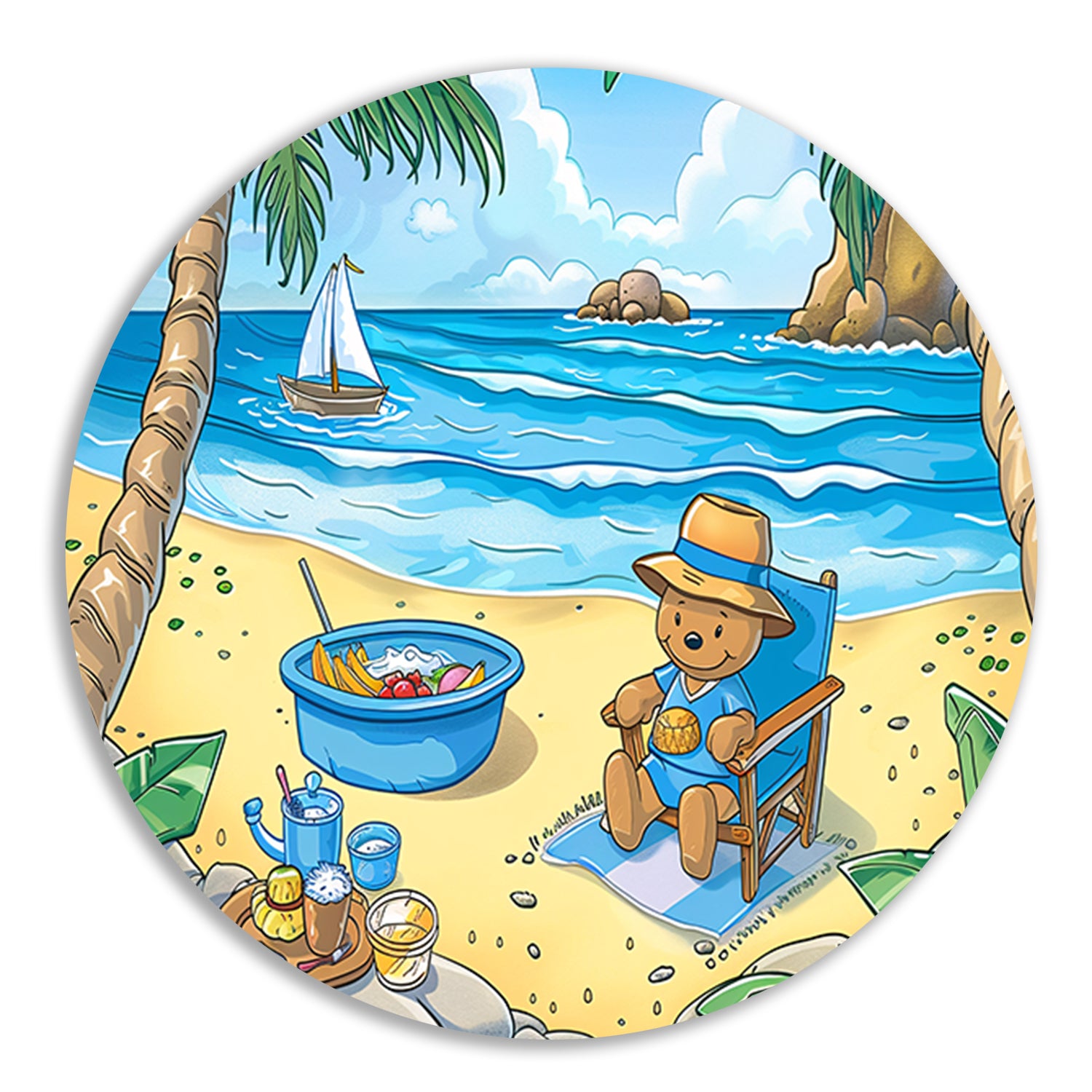 Tropische teddybeer op zomers strand aluminium muurcirkel