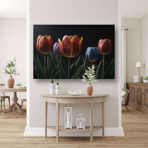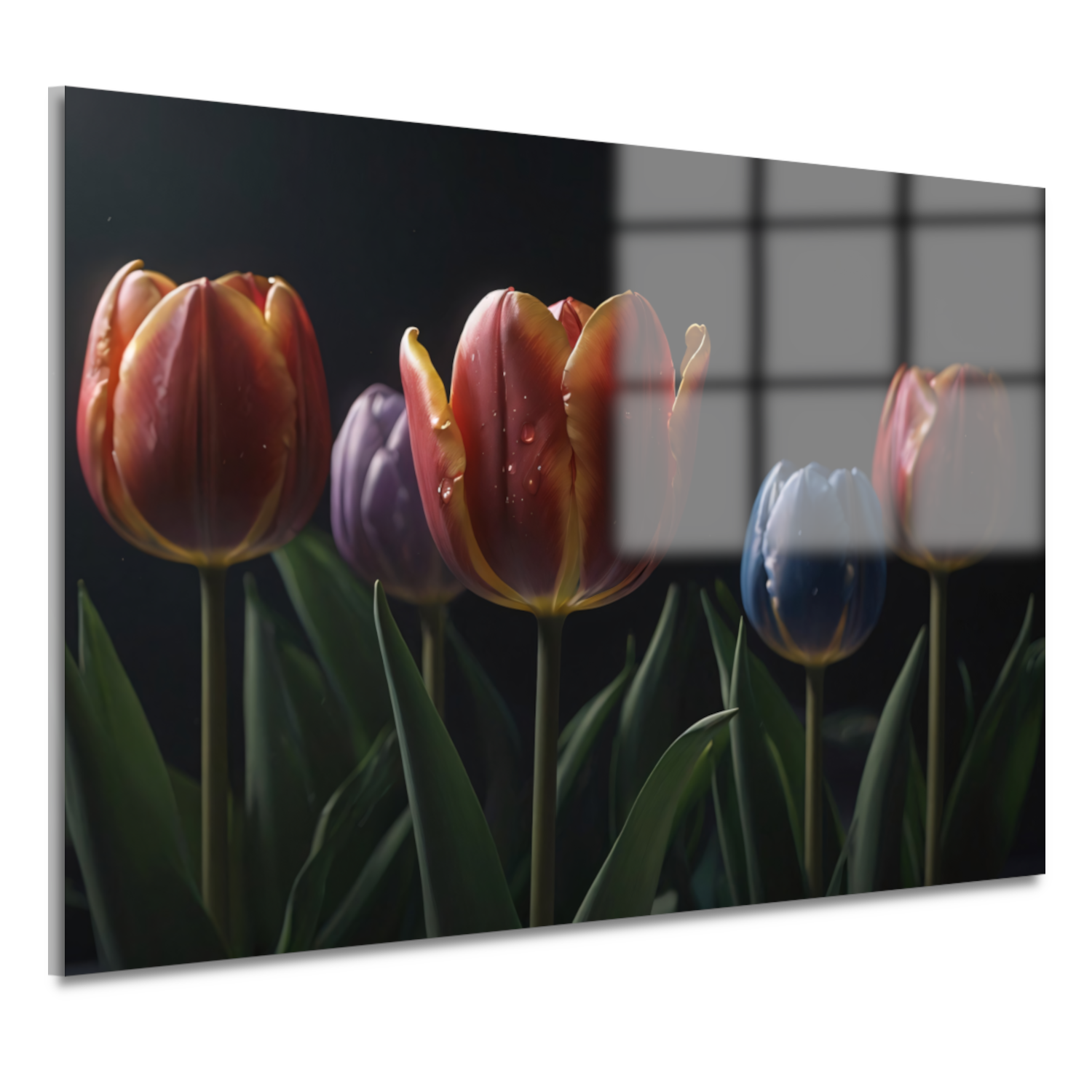 Tulpenpracht met waterdruppels in kleur acrylglas