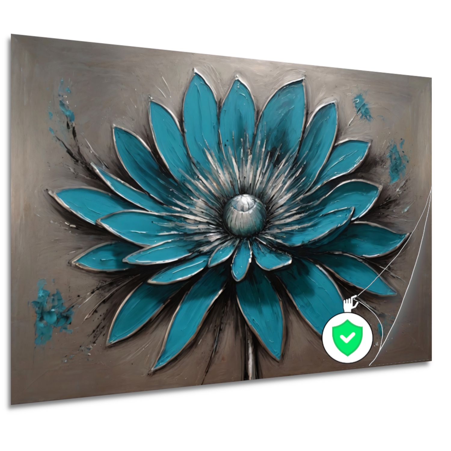 Turkooise Bloem met Zilveren Accenten poster