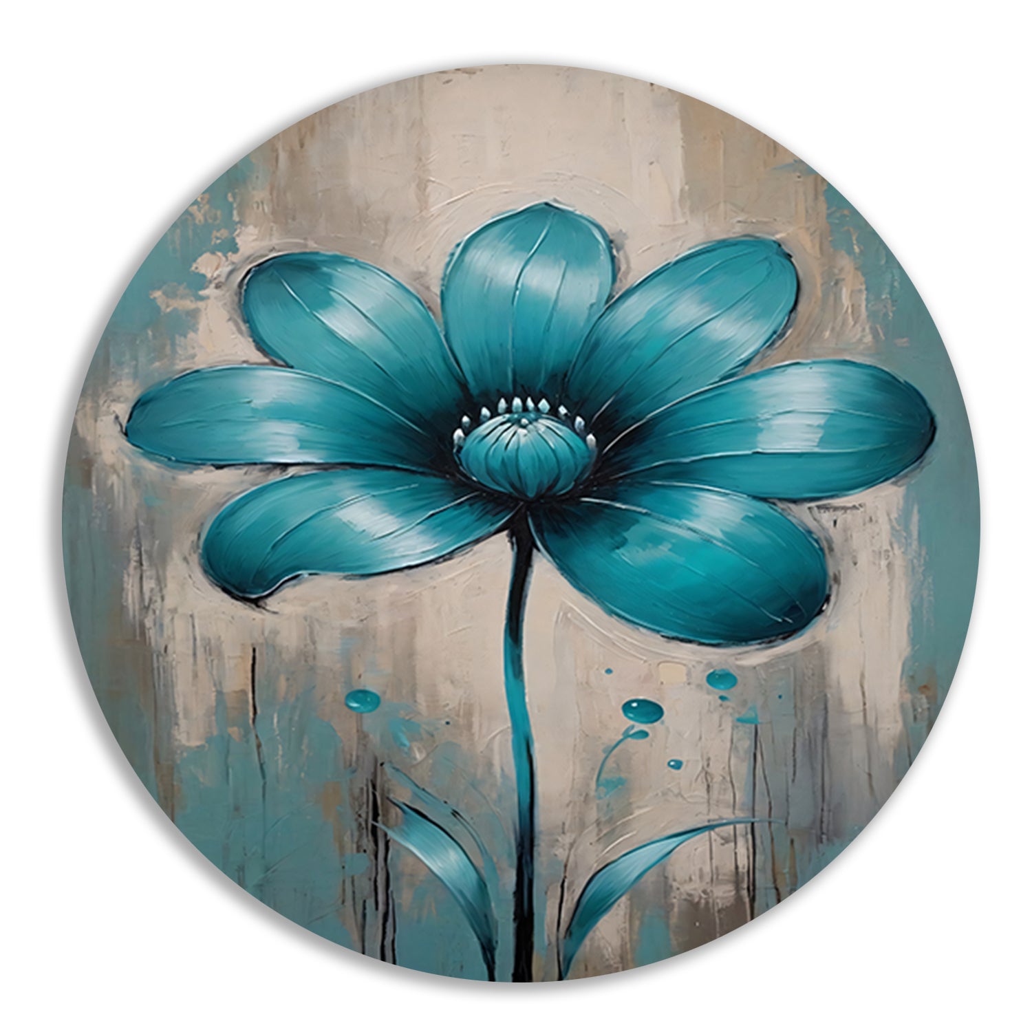 Turquoise Bloem op Beige Abstract Achtergrond aluminium muurcirkel