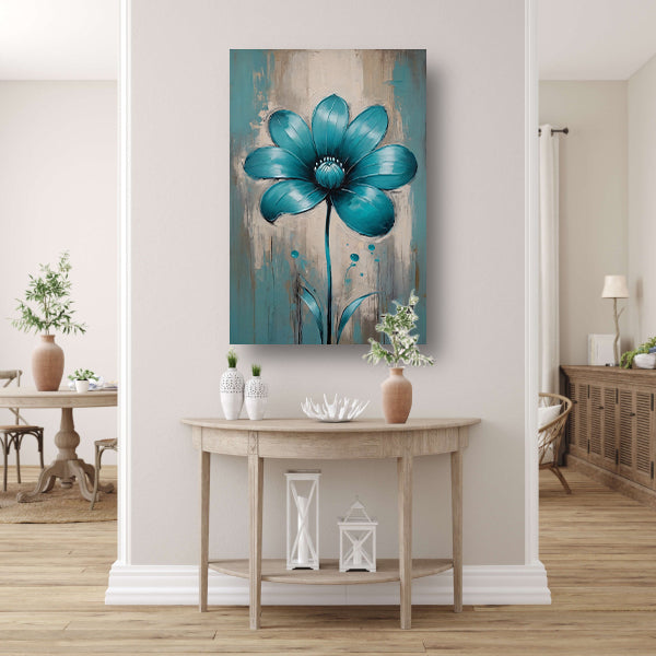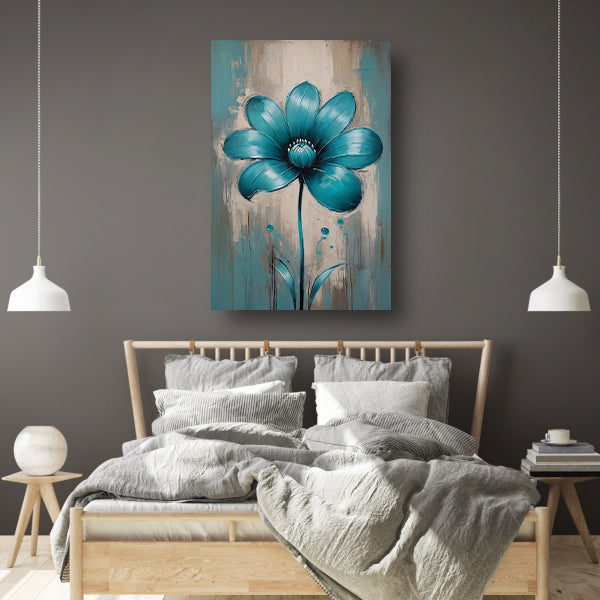 Turquoise Bloem op Beige Abstract Achtergrond poster