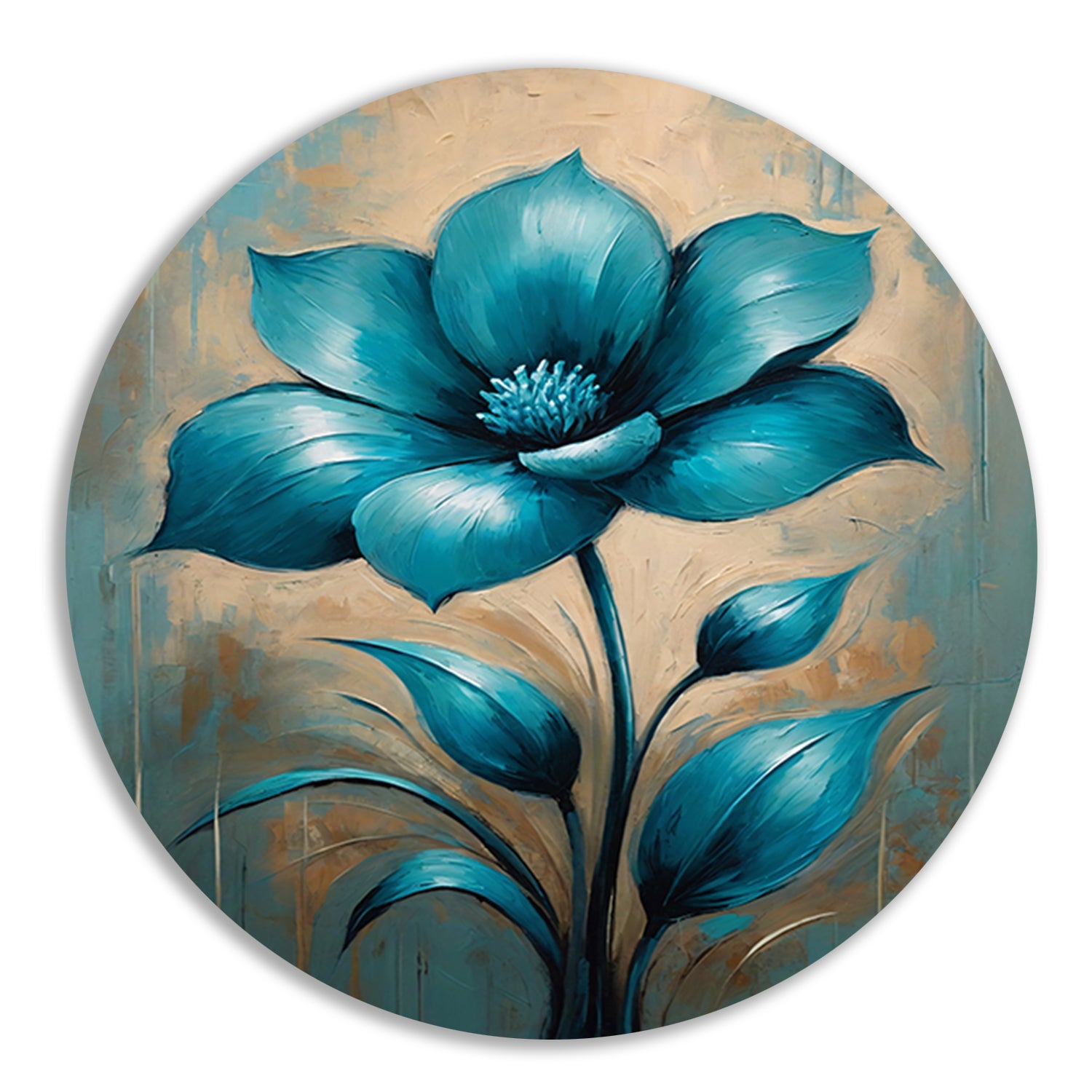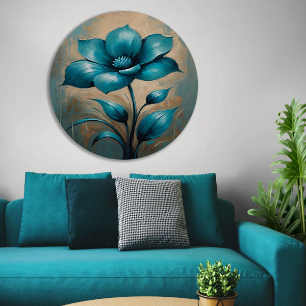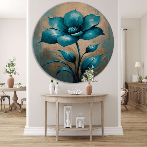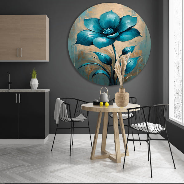Turquoise Bloem op Beige Achtergrond aluminium muurcirkel
