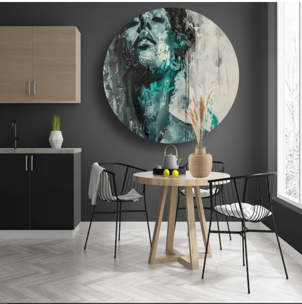 Deze muurcirkel is verkrijgbaar in meerdere formaten, zodat je altijd de perfecte afmeting kunt kiezen voor jouw muur. Voeg een artistiek tintje toe aan je interieur met deze prachtige Turquoise Emotie Abstracte Dynamiek aluminium muurcirkel.