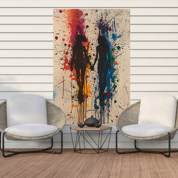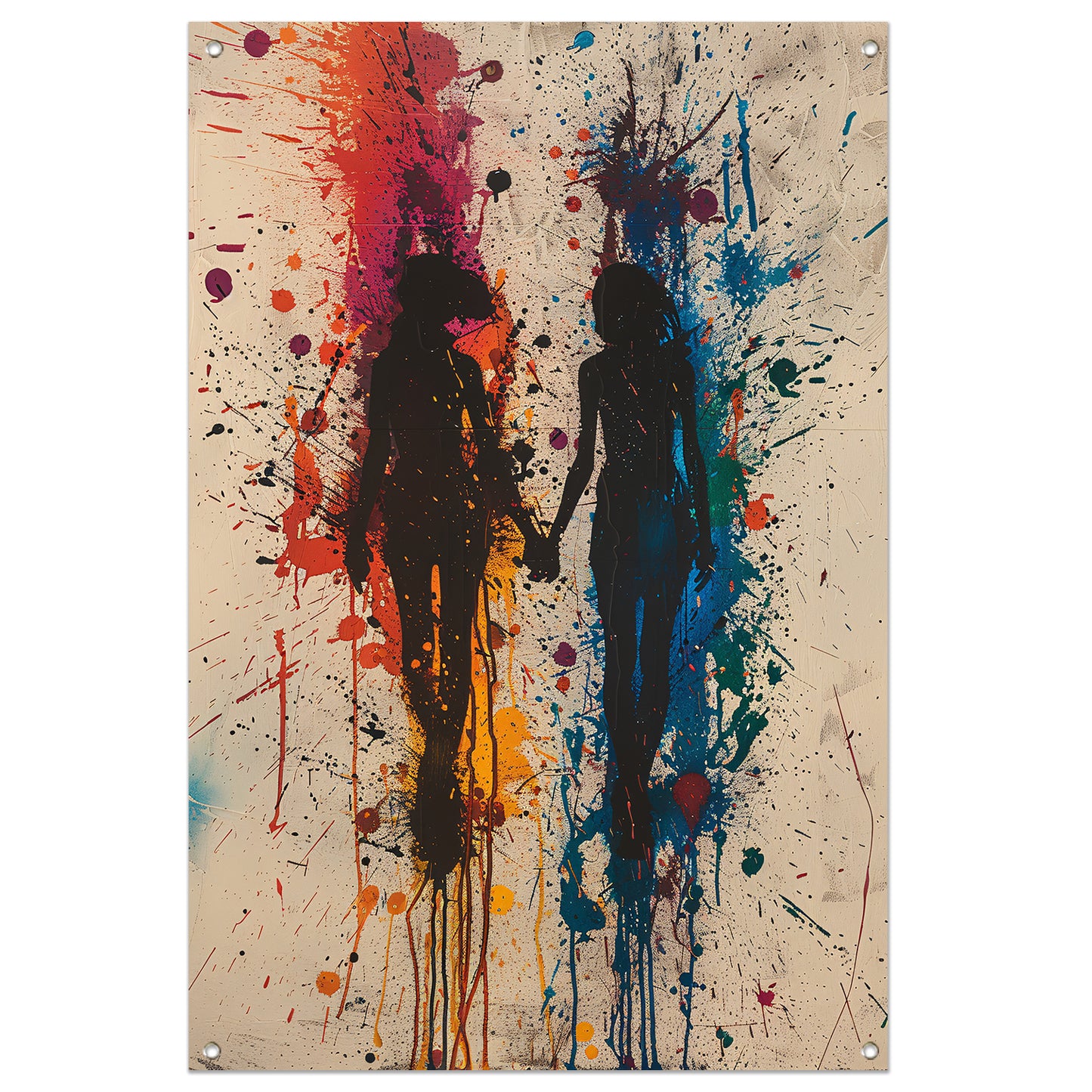 Twee figuren dansend in een explosie van kleuren tuinposter